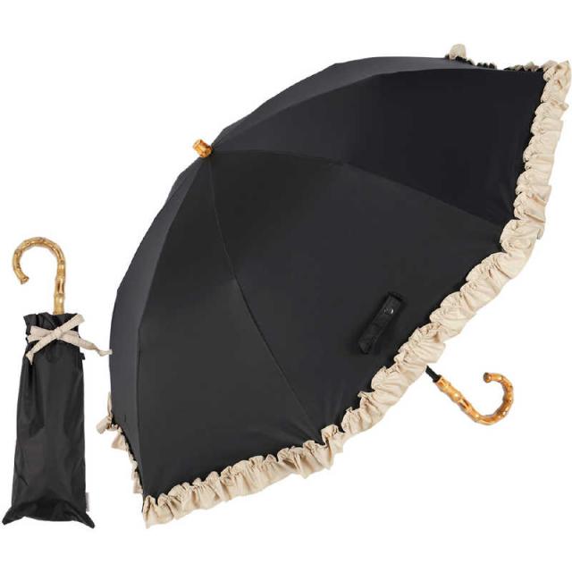 KIZAWA 2段式折りたたみ日傘 nino シングルフリル [晴雨兼用傘 /50cm] ブラック×ベージュ M50DQ-082PO-black-beige
