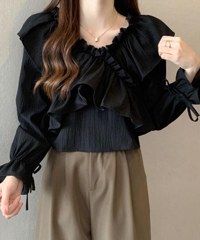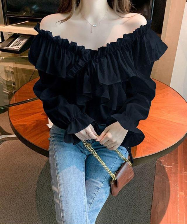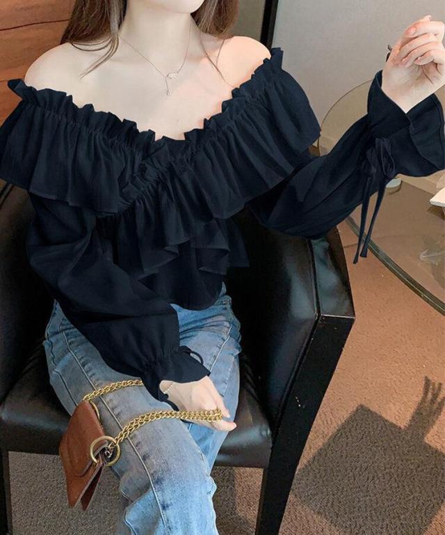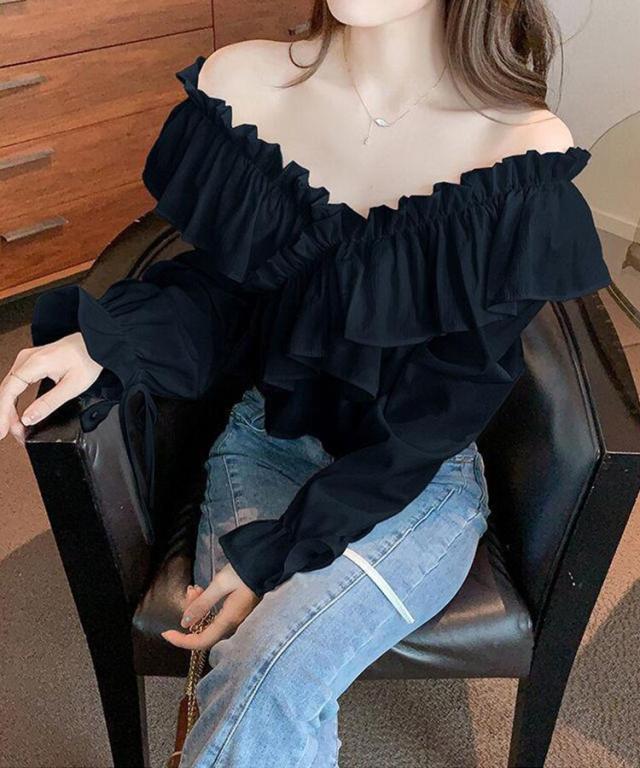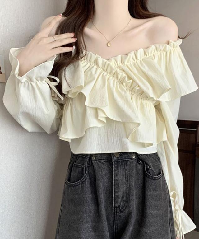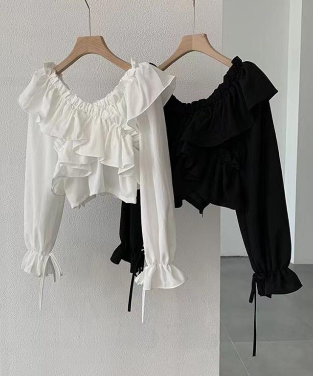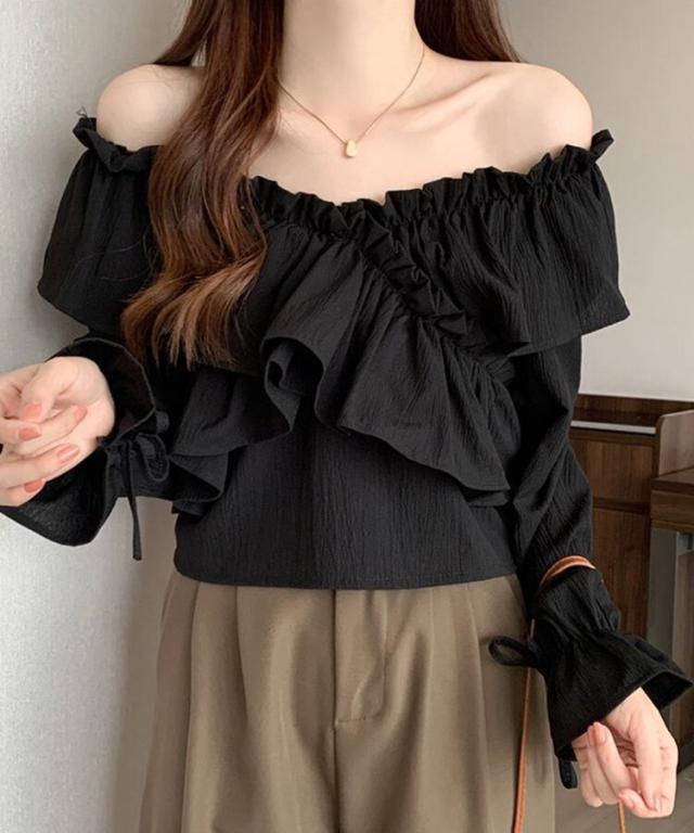 マルチWAYオフショルフリルリボンショート丈ブラウス
