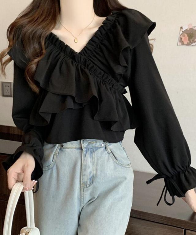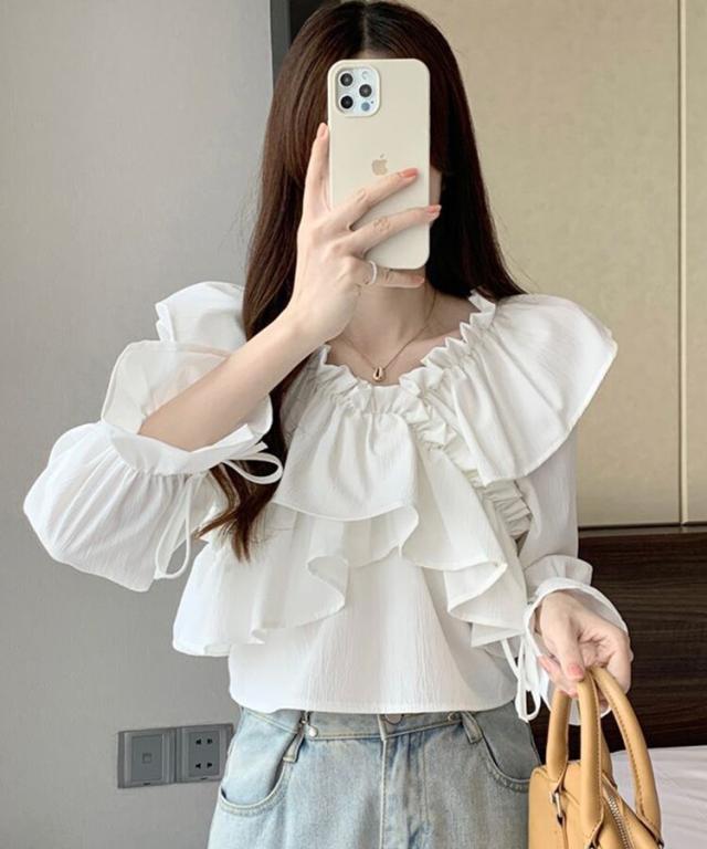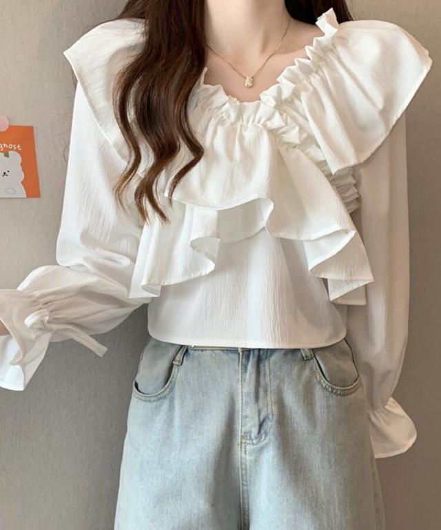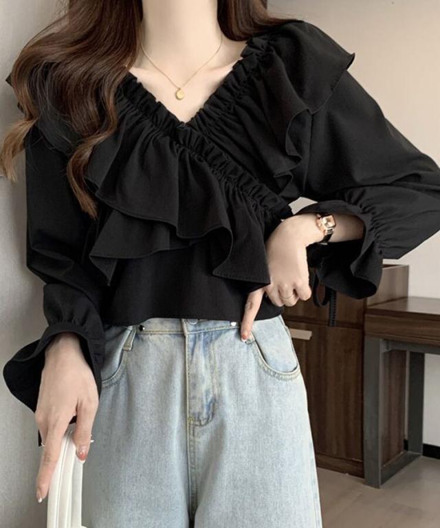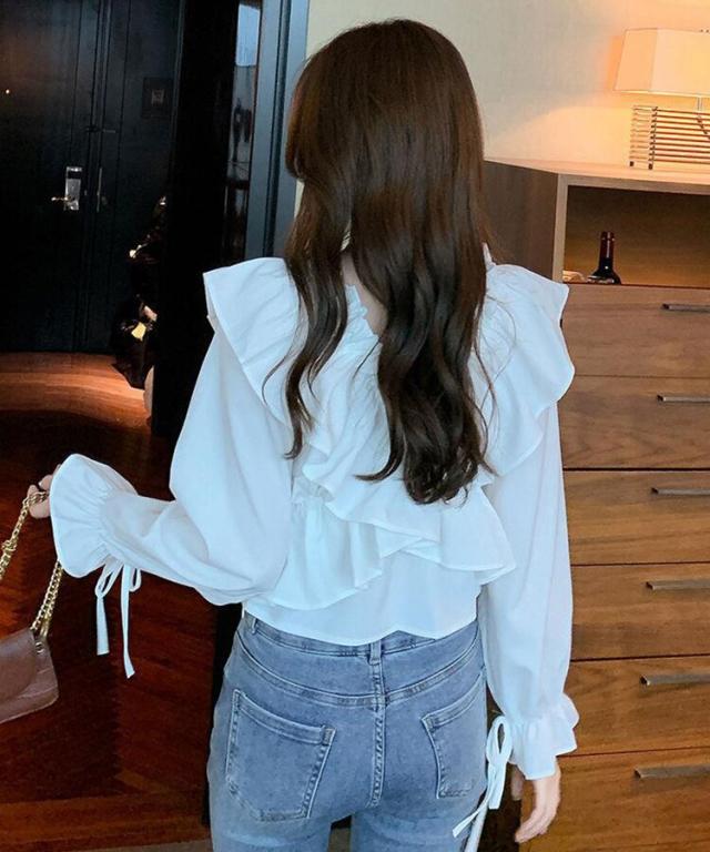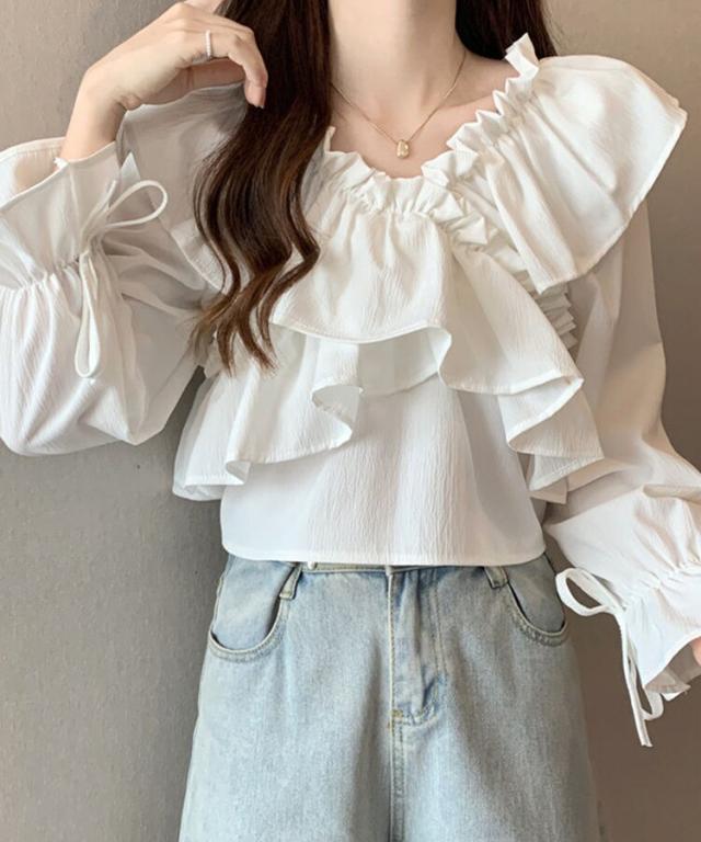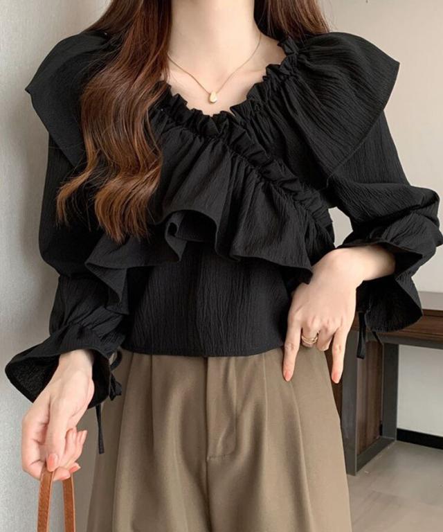 マルチWAYオフショルフリルリボンショート丈ブラウス