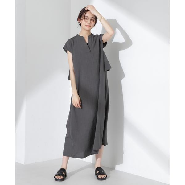 リネンのようなナチュラルな風合いのデザインワンピース