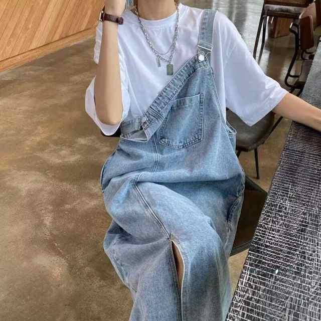 ワンピース デニム レディース ジャンパースカート サロペット スリット スカート デニムジャンパースカート デニムサロペット デニムワンピース オール 送料無料