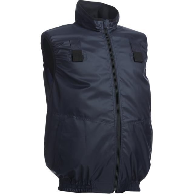 ●ランヤードの取り出し口には、YKKのロック式ファスナーを採用し、スライダーを倒してファスナーを固定することで、衣服の空気を逃がしにくくします。●胸部の左右のフック掛けで、2丁掛けランヤードに対応しています。●襟は通常のウエアよりも高いトールカラーを採用したことで、より上方へ風を送ることが可能になり、ヘルメット内部まで風を送り込めます。●肩口をゴム仕様にすることで隙間をなくし、ファンの風の流出を防ぎます。●ウエア背面内側にメッシュを張ることにより空間ができ、スムーズな風の循環をアシストします。●色:ネイビー●サイズ:5L●着丈(cm):74●胸囲(cm):150●肩幅(cm):61●フルハーネス対応ベストタイプ 質量225g