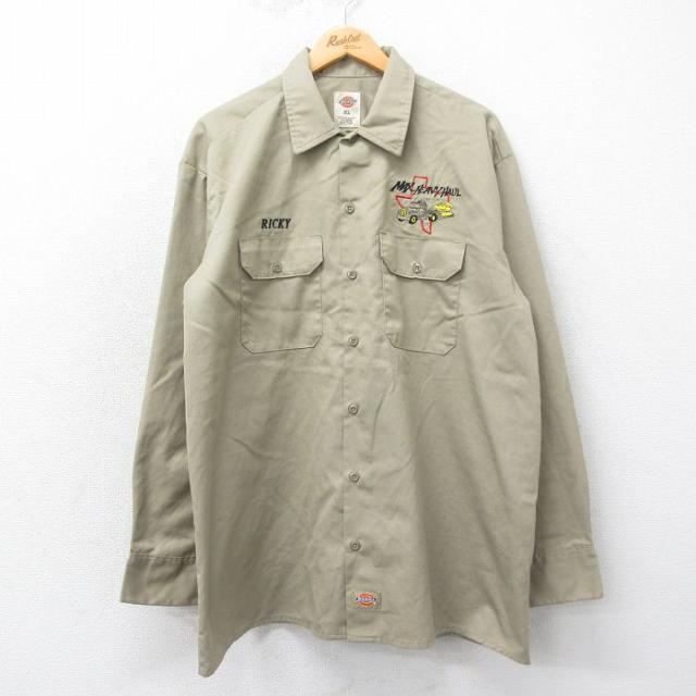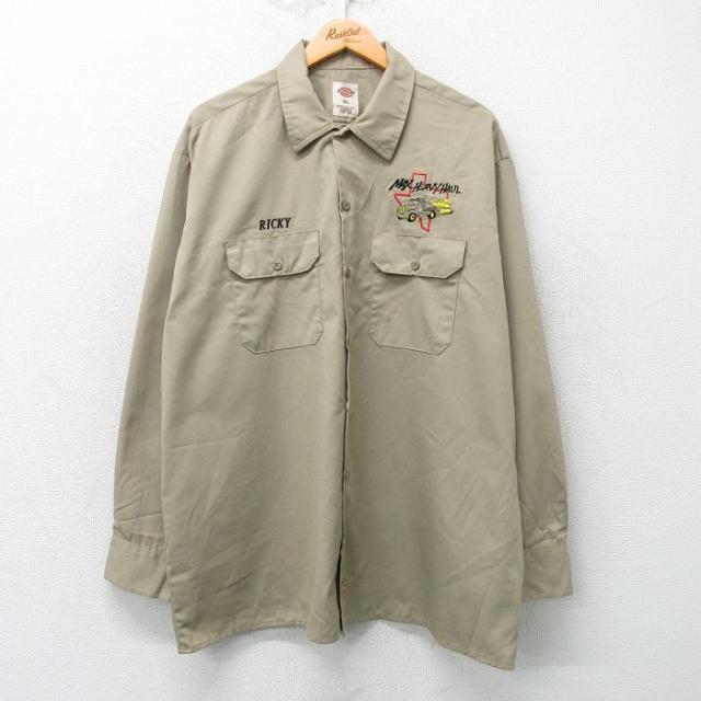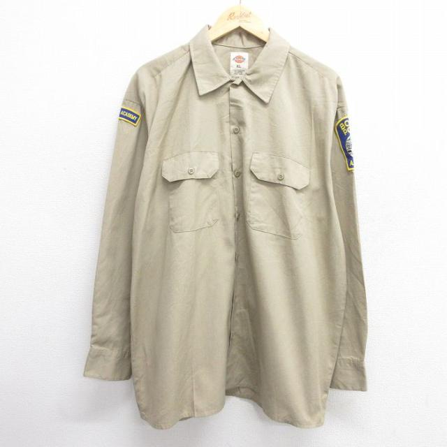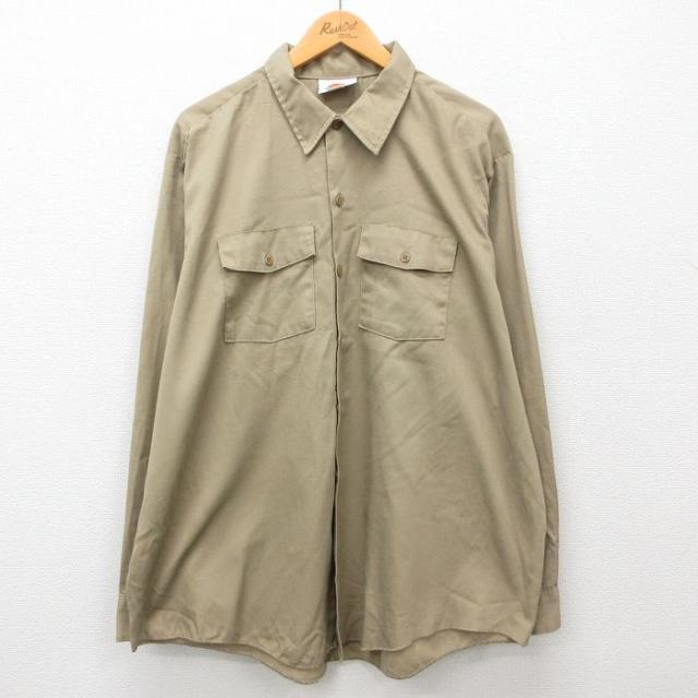 古着 ディッキーズ Dickies 長袖 ワーク シャツ メンズ MAX トラック 大きいサイズ ロング丈 ベージュ系 カーキ XLサイズ 中古 中古 古着