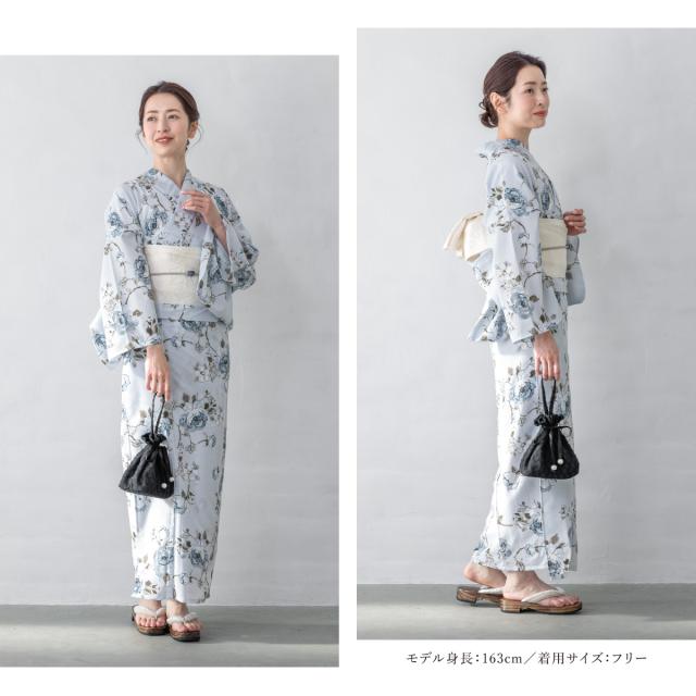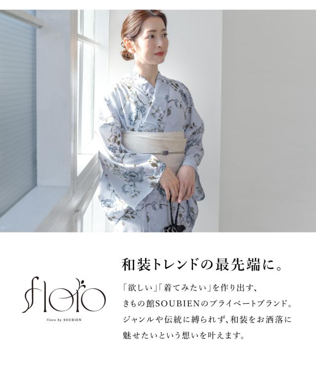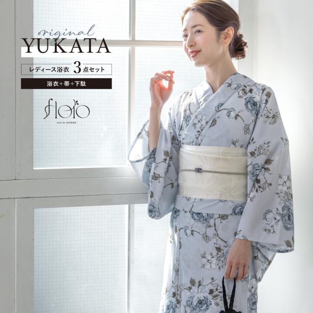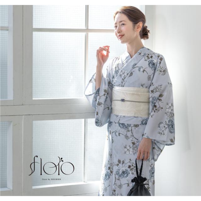 浴衣 セット レディース 浴衣セット 半幅帯 2025 floro 簡単 涼しい コーディネート済み 水色 白 花柄 30代 40代 50代 下駄 S フリー 送料無料