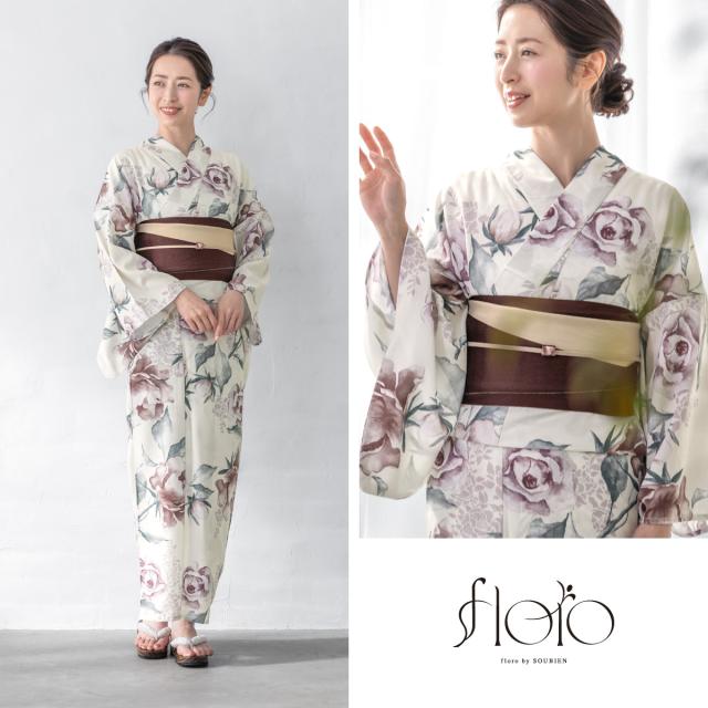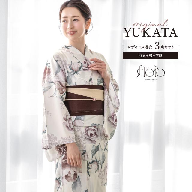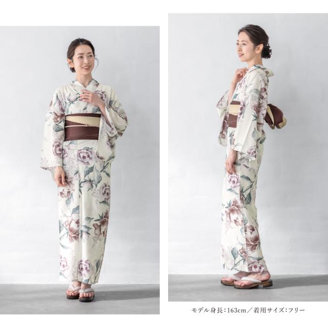 浴衣 セット レディース 浴衣セット 半幅帯 2025 floro 簡単 涼しい コーディネート済み クリーム 赤茶 花柄 30代 40代 50代 下駄 S フリー 送料無料