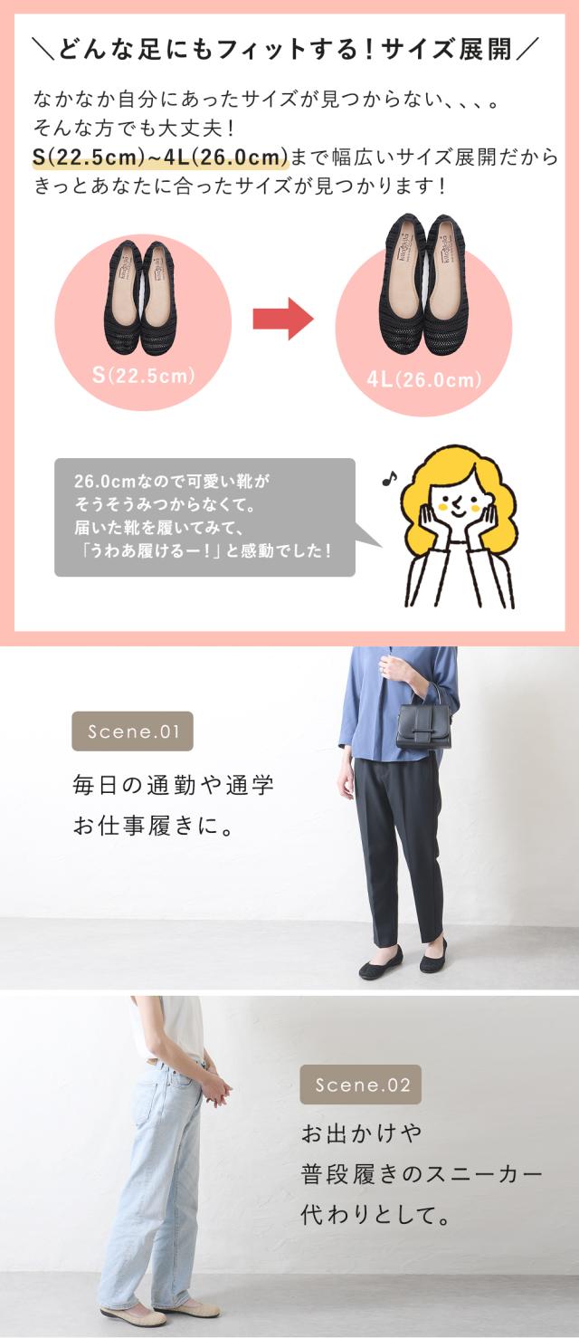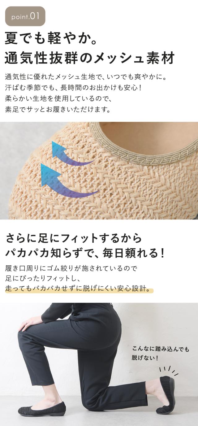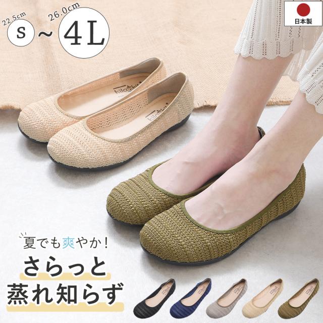 パンプス フラットシューズ ローヒール ぺたんこ フラット ラウンドトゥ 痛くない 柔らかい 長時間 疲れない 歩きやすい 走れる 蒸れない おしゃれ きれいめ かわいい 靴 日本製 大きいサイズ 3L 4L 25cm 25.5cm 26cm 黒 ブラック 軽量 立ち仕事 通勤 仕事用 メッシュ