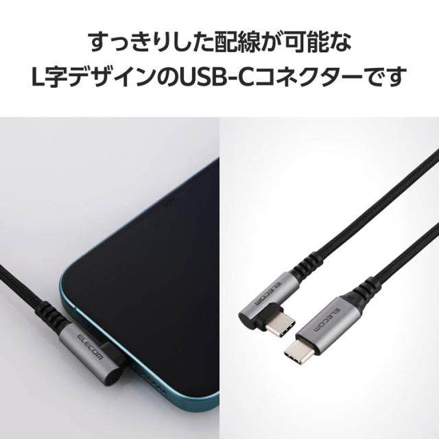 【エレコム USB Type-C ケーブル USB-C to C 2m L字 PD 60W ブラックの商品詳細】