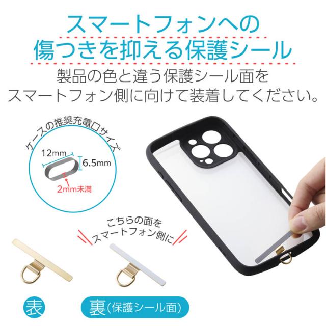 ●スマートフォンとケースの間に挟むだけでストラップホールを追加できる、1口タイプのストラップホールシートです。