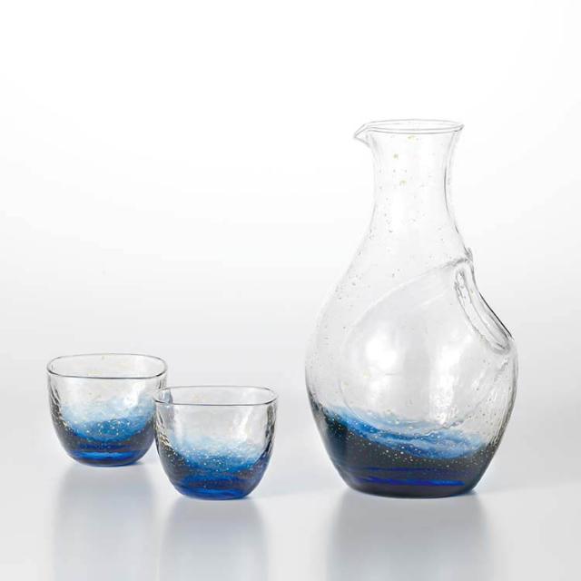 深みのある藍色と金箔の美しさが魅力の冷酒セット