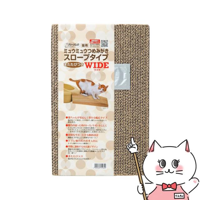 猫ちゃんが快適に過ごせるように設計、インテリアに調和する木目調デザインのつめみがき。猫ちゃんが安心して登れる幅広タイプ。脚力の弱った時のトイレサポートに、昇降をサポートする傾斜設計。トイレ後のつめとぎに。