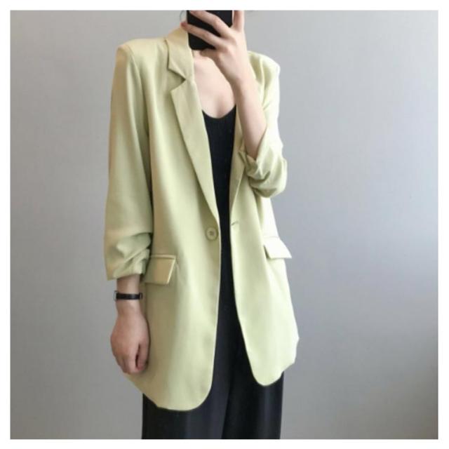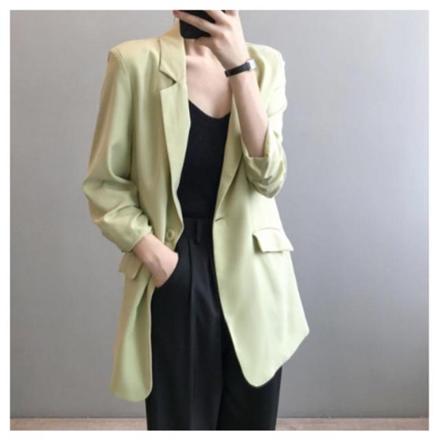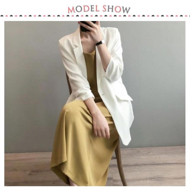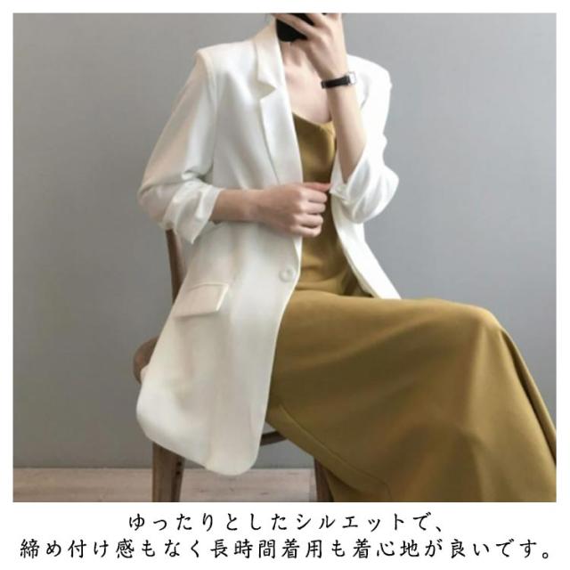 | さらりとした落ち感ありジャケット~サラサラの薄め生地は夏にピッタリ! カジュアルすぎないシンプルデザインのテーラードジャケットは通勤でも着れます。 ゆったりとしたシルエットで、締め付け感もなく長時間着用も着心地が良いです。 さっと羽織れば、UV対策や冷房対策にもなる〜やや長めの丈感もお尻カバーを叶う。 女性らしいエレガントな雰囲気を醸し出し、清楚なきちんとコーディネートにも最適。 | |
