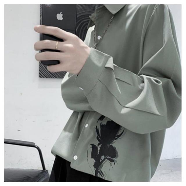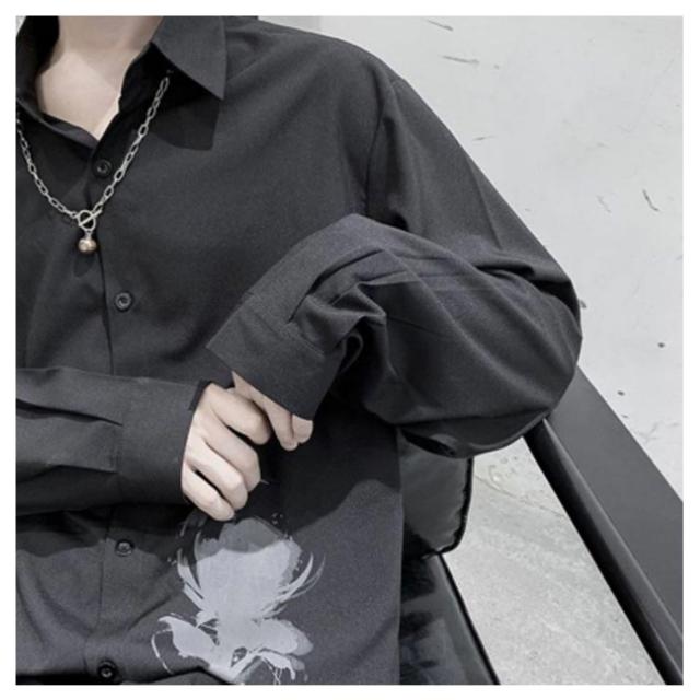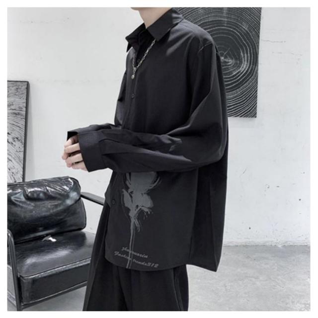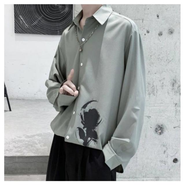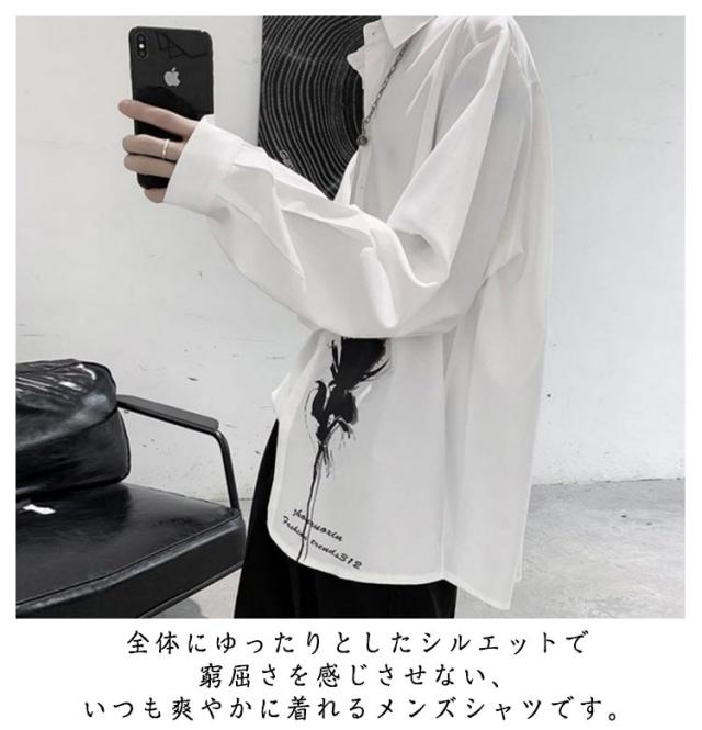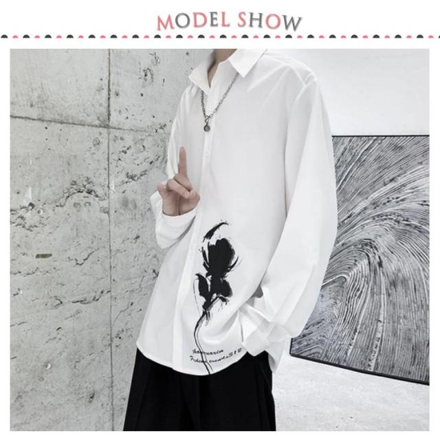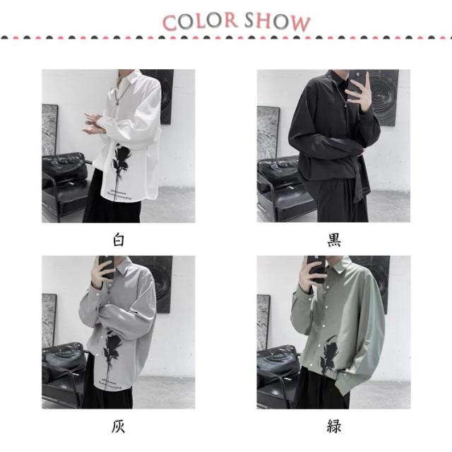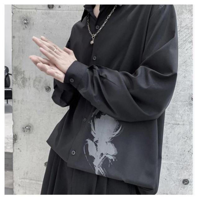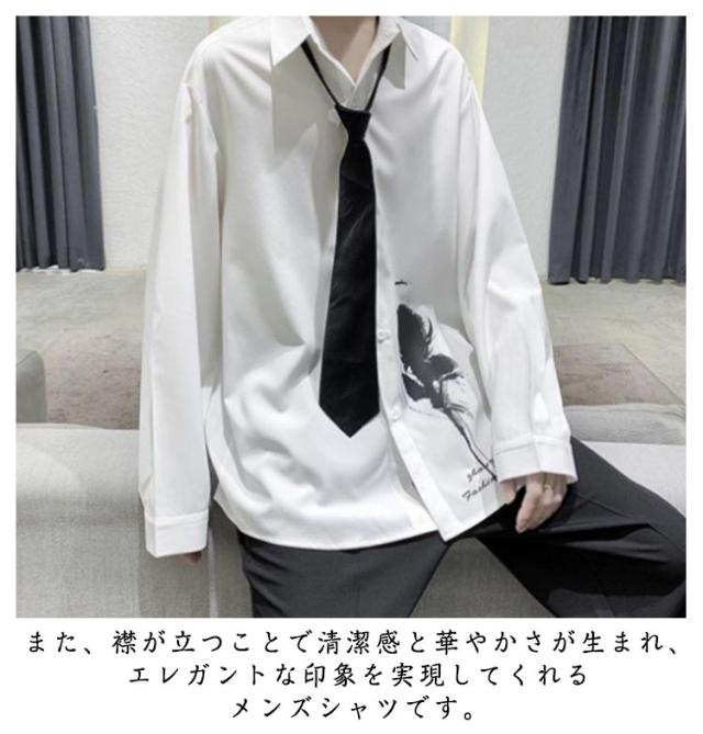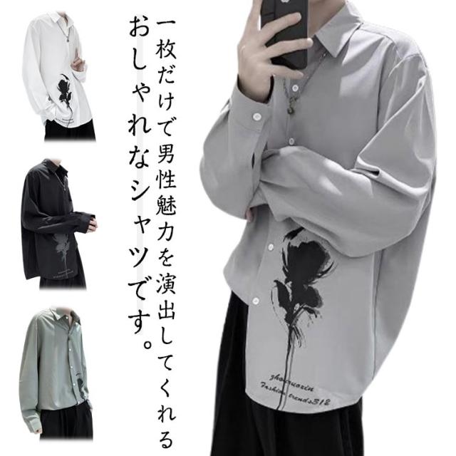 バラ 暗黒系 シャツ メンズ カジュアルシャツ レディース ブラウス 長袖 おしゃれ 柄シャツ オーバーサイズ 薔薇柄 ローズ プリント ビッグシルエット カジュアル トップス 原宿系 ストリート系 モード系 個性的