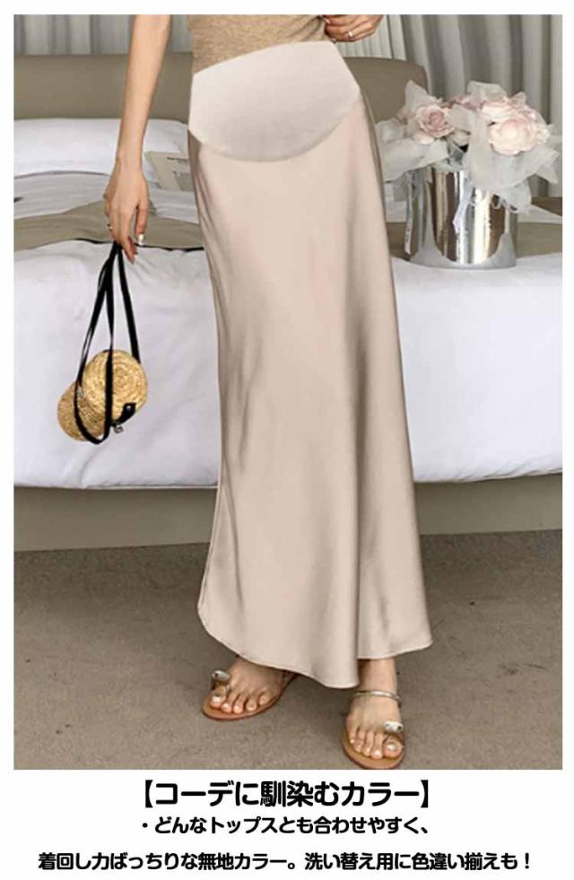 サテンスカート スカート マタニティ タイト サテン aライン ロング丈 レディース ロングスカート 服 妊婦服 接触冷感 産前 産後 妊婦 妊娠 ボトムス フレアスカート ウエストゴム マキシ きれいめ とろみ 落ち感 光沢感 ボトムス オフィス 通勤 春 夏 秋 送料無料