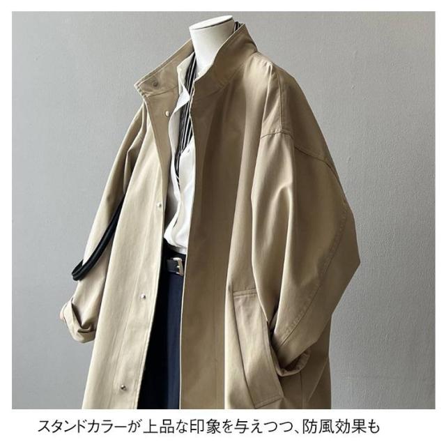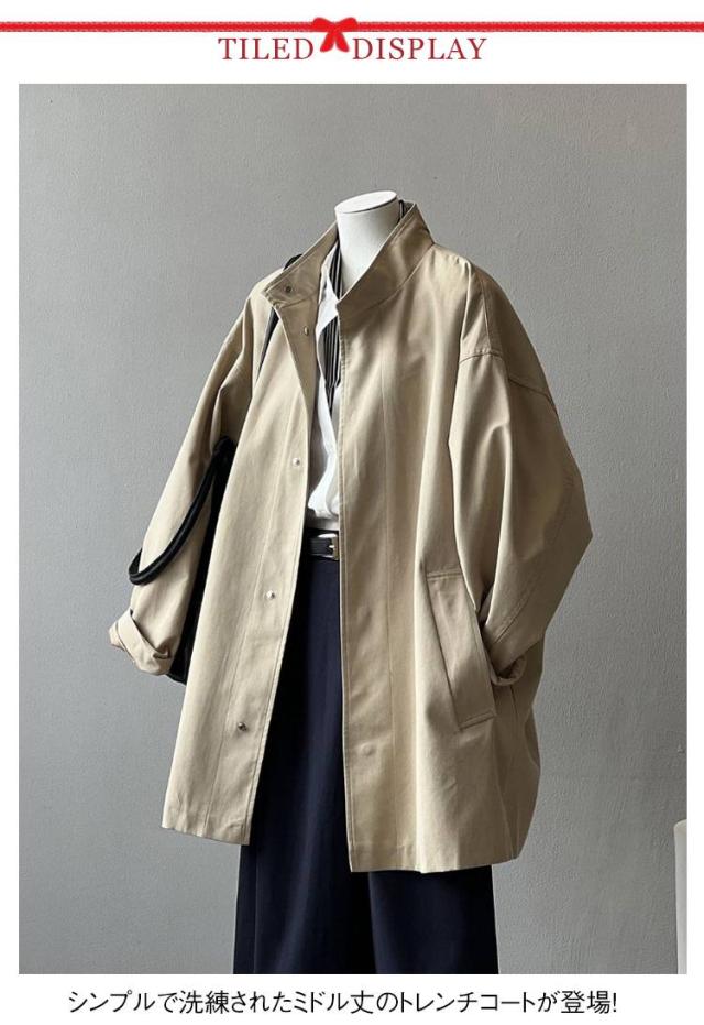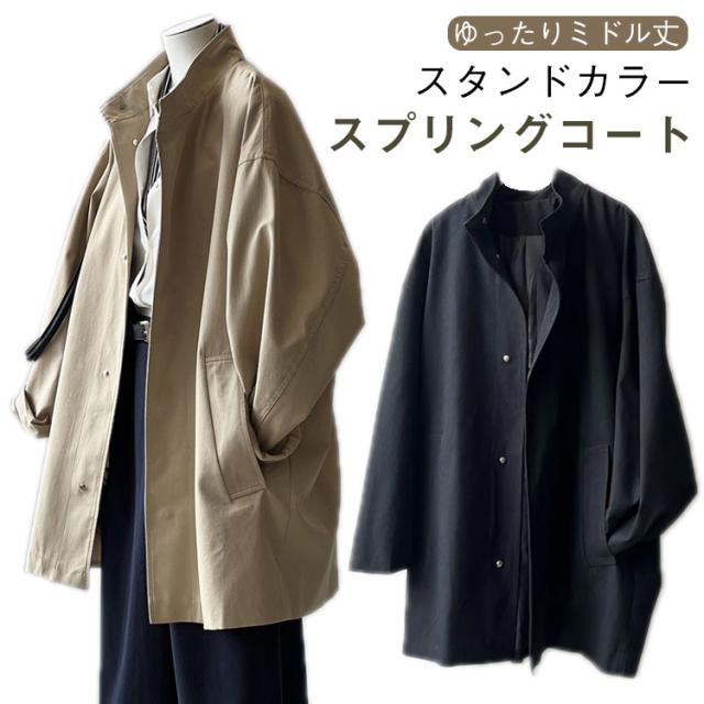 スプリングコート スタンドカラー ミドル丈 トレンチコート レディース アウター 春 トレンチ コート ゆったり 長袖 ロングコート シンプル 無地 春服 秋服 送料無料