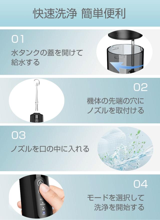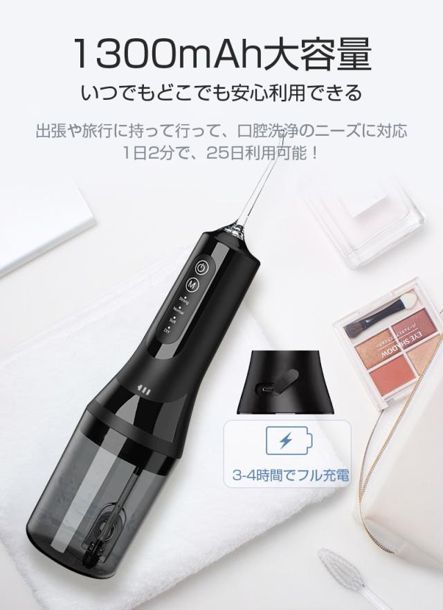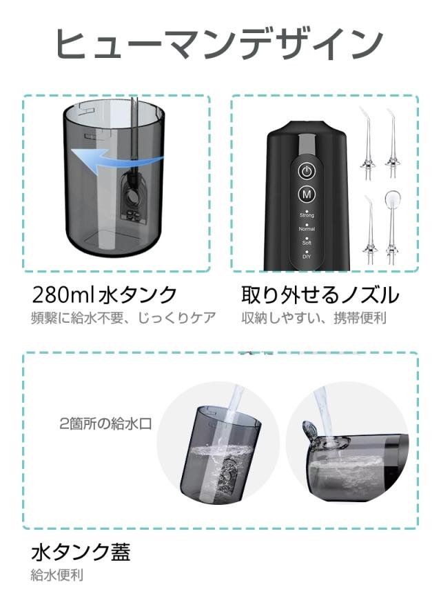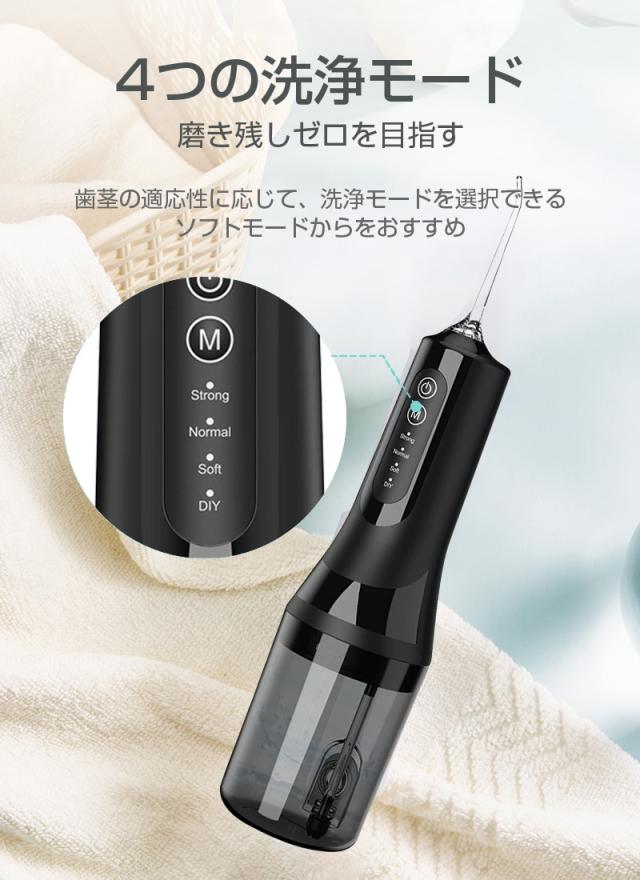 【2025最新】口腔洗浄器 ウォーターピック ジェットウォッシャー 4本ノズル付き 4つモード調節可能 IPX7防水仕様 歯垢除去 Type-C充電 残電量表示 携帯型 歯周ポケット洗浄 磨き残しゼロを目指す 省スペース 280ml水タンク 日本語取扱説明書付【PL保険加入済み製品・安心】