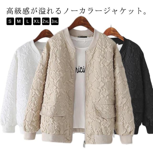 春服 ノーカラー カジュアル 可愛い 春服 レディース ブルゾン ショート丈 通勤 長袖 ジャケット 羽織り 春秋 お洒落 スタジャン ライトアウター ガーリー きれいめ 通勤