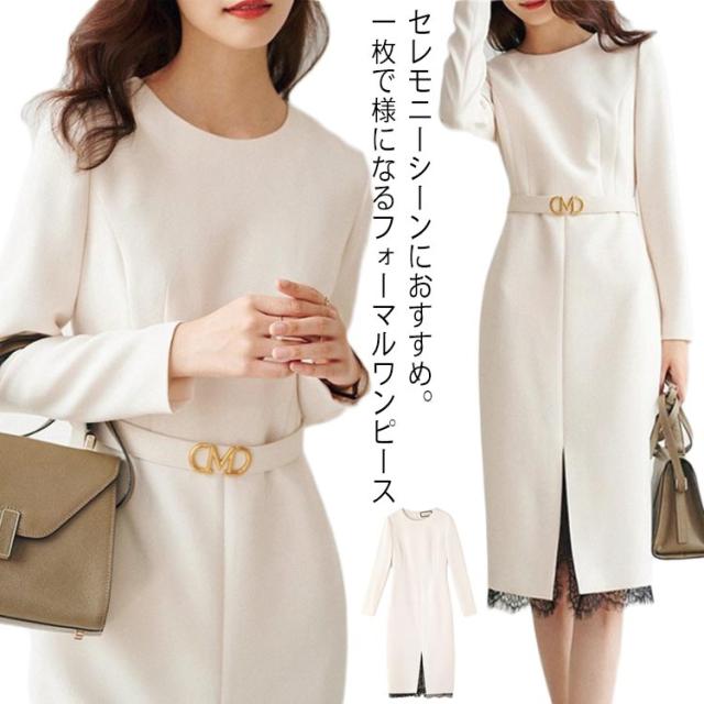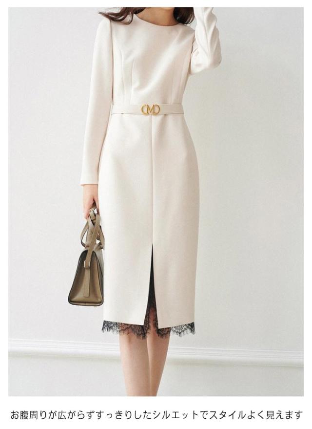 スリット入り 卒園式 ワンピーススーツ 上品 入学式 入学式 レディース 結婚式 フォーマルスーツ 卒業式 きれいめ 裾レース 長袖 切り替え ママスーツ 体型カバー 学校 お宮参り 七五三 大人