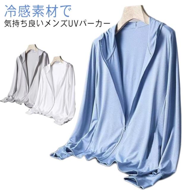 パーカー ストレッチ ラッシュガード UVパーカー UVカット 夏 冷感素材 大人 ジップパーカー 水着 男性 紫外線から肌を守る 薄手 長袖 アウトドア 冷感 大きいサイズ キャンプ 釣り 海水浴 メンズ おしゃれ カジュアル 接触冷感 トップス 無地 シンプル