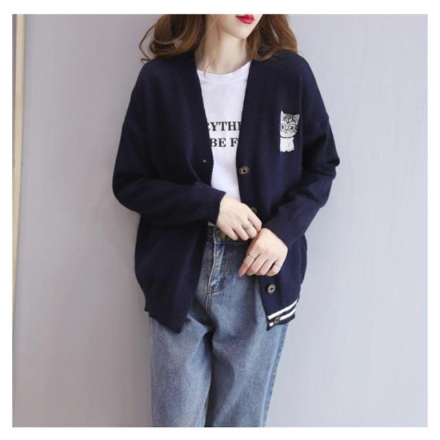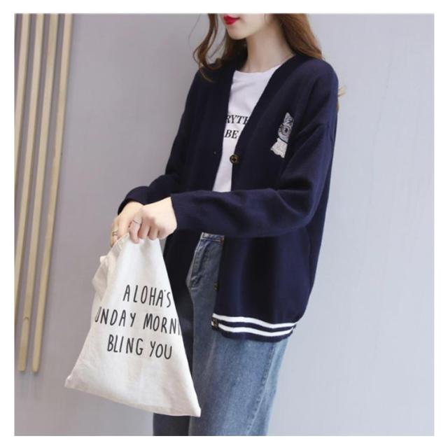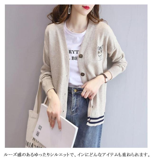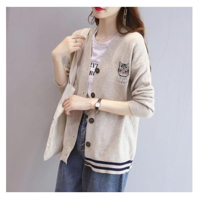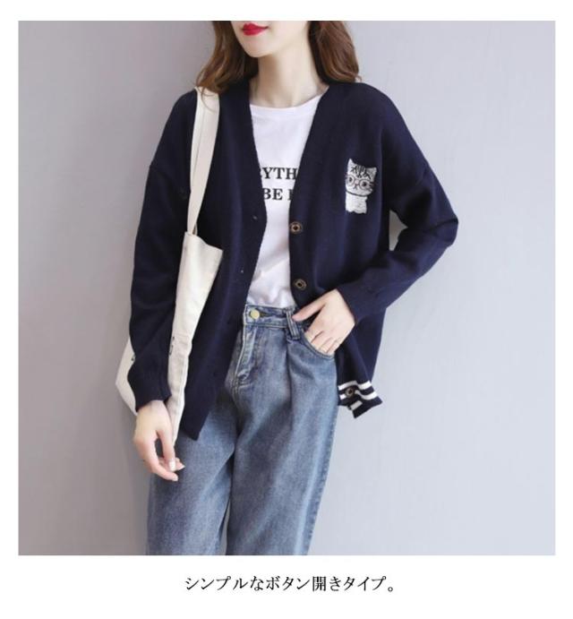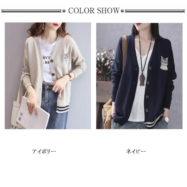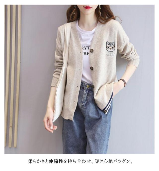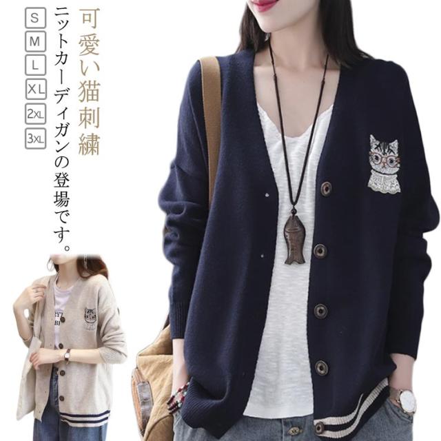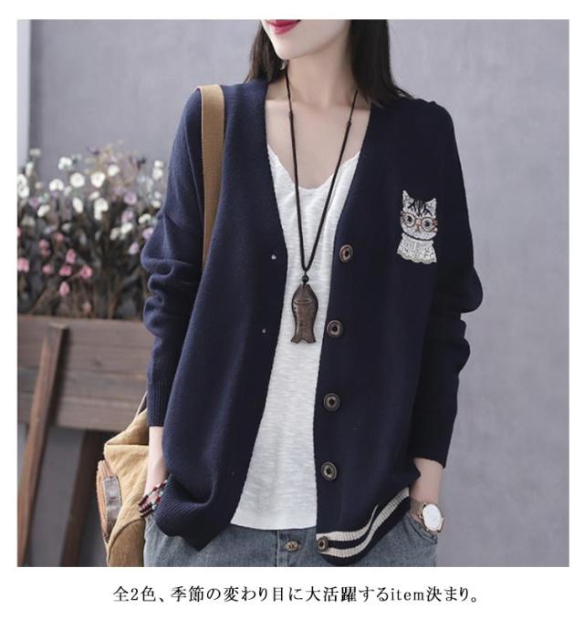 ナチュラル風 ニットカーディガン かわいい 猫 レディース 羽織 ニットカーディガン 刺繍 カーディガン 長袖 春秋 ボタン付き ゆったり 森ガール 秋物 春物 セーター 前開き 刺繍カーディガン シンプル 森系 猫柄 トップス 大きいサイズ