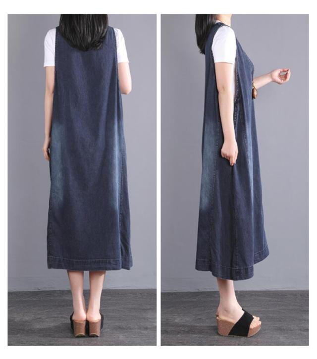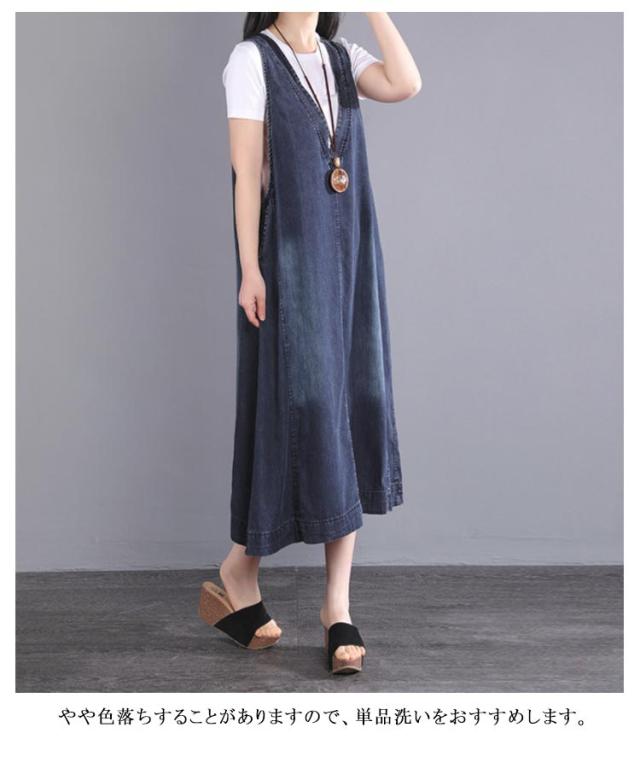 女性 ロング丈 Vネック デニムベスト Vネック マキシ丈 ジャンパースカート オールインワン 春夏 ジャンパースカート サロペット ノースリーブ ワンピース 大人 デニムワンピース おしゃれ 春 スカート 秋 かわいい シンプル 無地 体型カバー 着?せ カジュアル