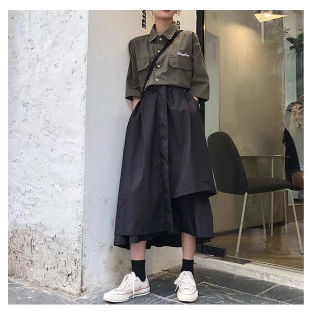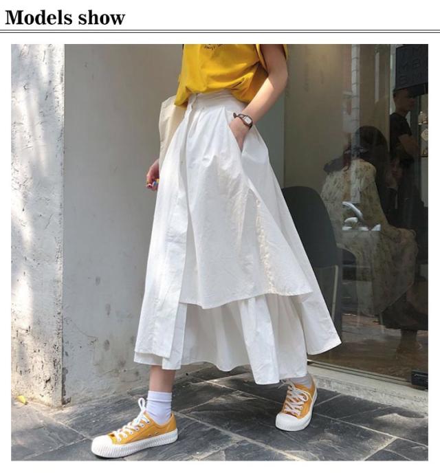 モード系 ウエストゴム アシンメトリースカート ロングスカート Aライン レディース 春夏 ミモレ アシメスカート ゆったり ハイウエスト 体型カバー 無地 カジュアル フレアスカート 黒 白 韓国 ファッション