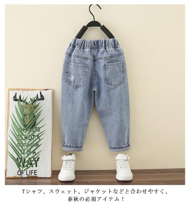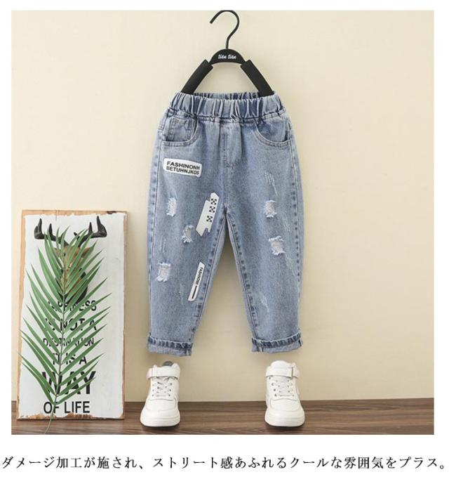 ダメージ デニムパンツ ダメージジーンズ テーパード ダメージデニムパンツ キッズ 子ども 子供服 ウエストゴム ボトムス ジーンズ 男の子 ジュニア 普段履き 90 100 110 120 130 140