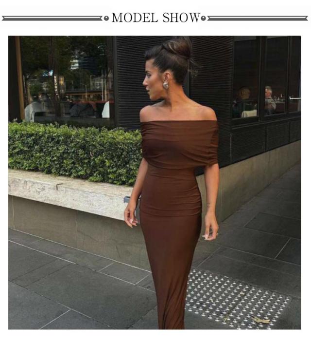 | すっきりスレンダーなタイトスタイルに、肩出しオープンショルダーがエレガントなセクシーさを醸し出す、ロング丈ワンピースです。 全体しわ仕様が上品で清楚なオーラ、ラグジュアリーで大人な個性を演出。 お呼ばれパーティーや発表会、クラブ,スナック,ラウンジ,キャバドレス等々、これ1枚で着回し可能なセクシードレスワンピです。 | |