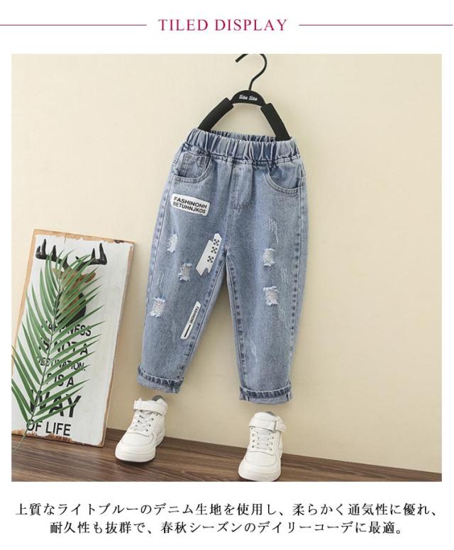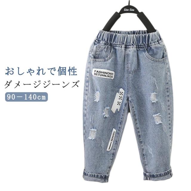 ダメージジーンズ ボトムス 子ども キッズ 130 子供服 デニムパンツ ジーンズ テーパード ダメージデニムパンツ 男の子 ウエストゴム ジュニア 普段履き 90 100 110 120 男の子 140