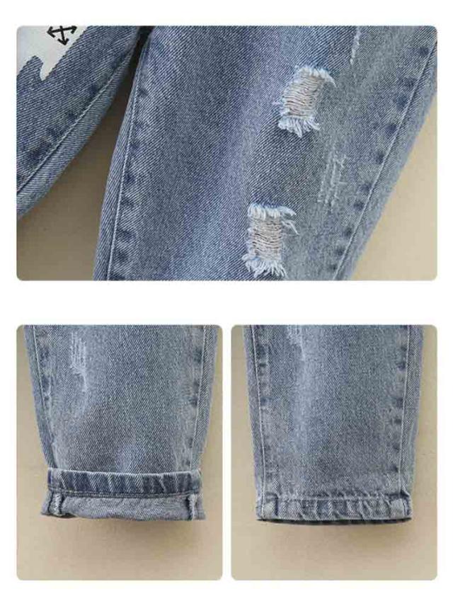 | クールで快適な着心地を両立するキッズダメージデニムパンツ。 上質なライトブルーのデニム生地を使用し、柔らかく通気性に優れ、耐久性も抜群で、春秋シーズンのデイリーコーデに最適。 ダメージ加工が施され、ストリート感あふれるクールな雰囲気をプラス。 ゆったりとしたシルエットで、動きやすさを確保しました。 ウエストはゴム仕様で快適なフィット感を提供し、着脱も簡単。 Tシャツ、スウェット、ジャケットなどと合わせやすく、春秋の必須アイテム! | |