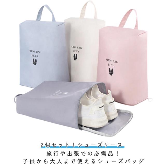 シューズ袋 防水 シューズバッグ 軽量 スポーツ ファスナー 2個セット!シューズケース 小学校 子供用 キッズ コンパクト 高学年 ゴルフ 高校生 靴入れ シューズ入れ 薄型 折りたたみ 小学生 トラベル 旅行 出張 2個セット!シューズケース 持ち運び