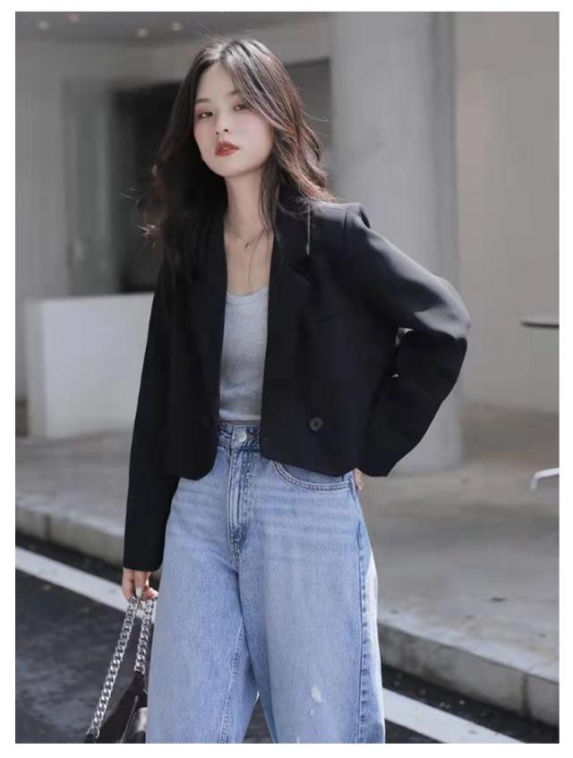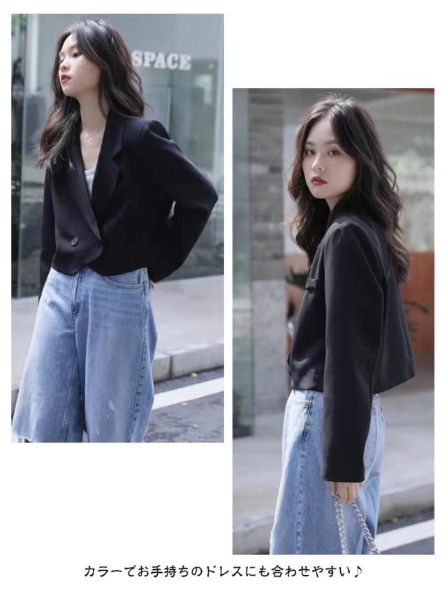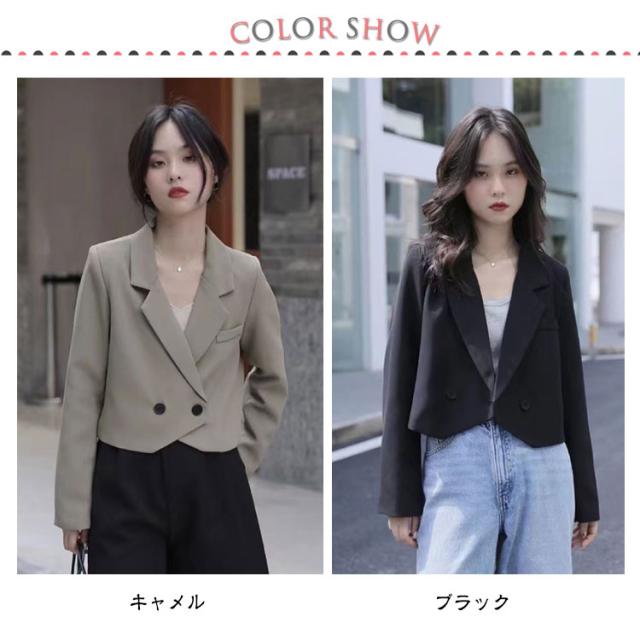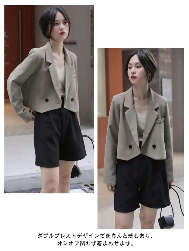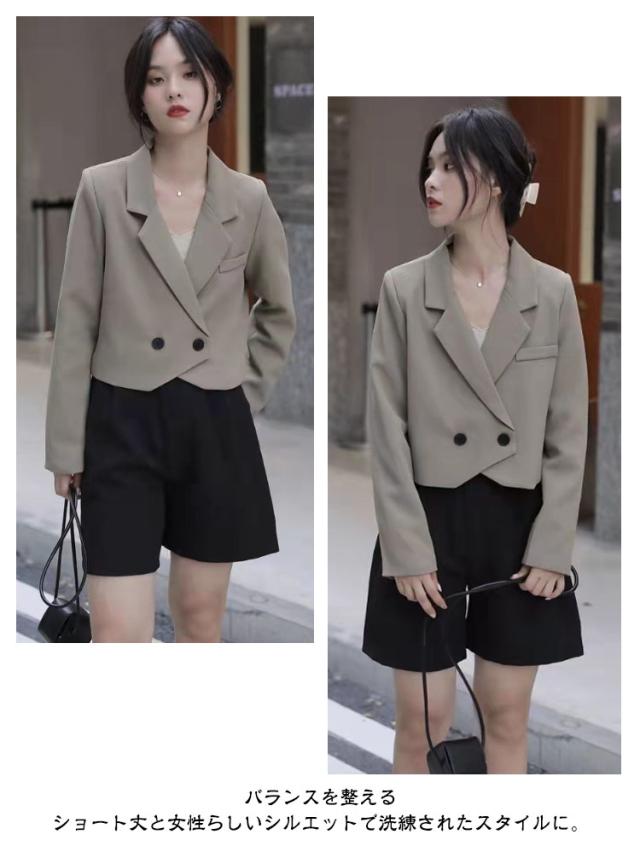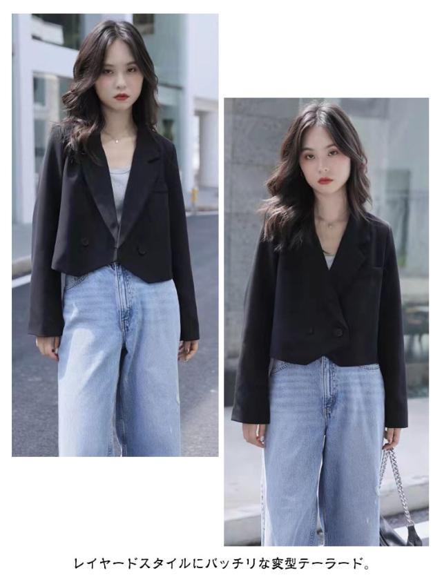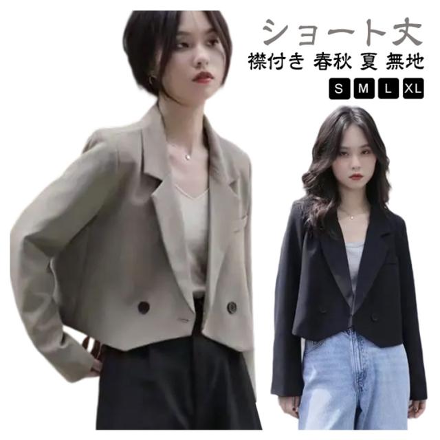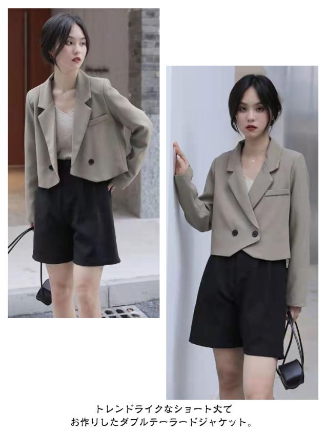 ボタン ダブル テーラードジャケット テーラード 裏地あり ライトアウター レディース 春 秋 夏 テーラードジャケット ショート丈 ショートジャケット ショートテーラード 薄手 ジャケット 長袖 羽織り コート 黒 韓国ファッション 大人 春コーデ 上品