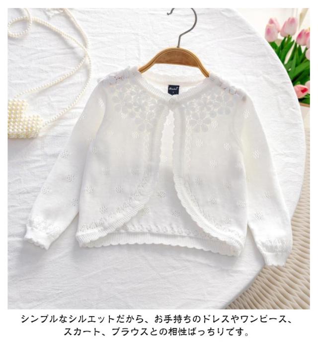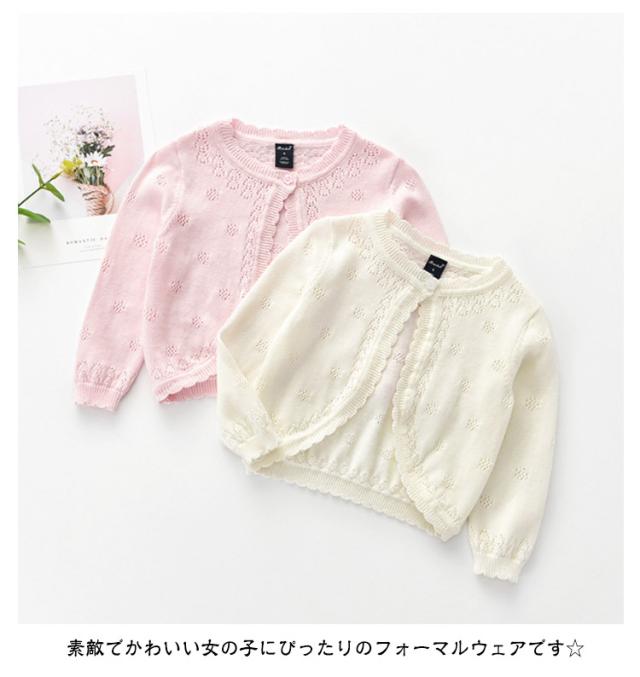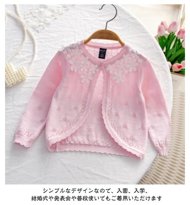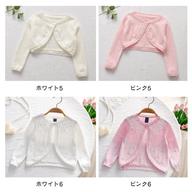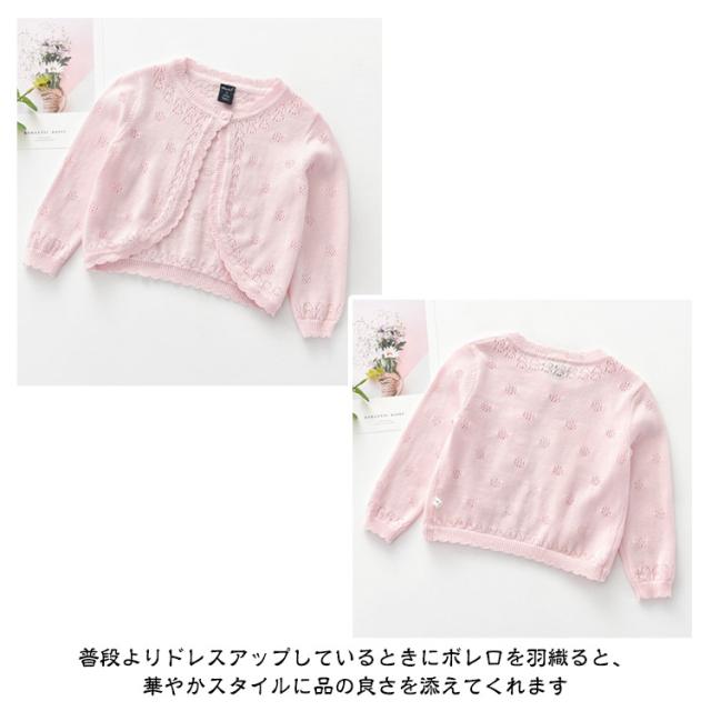 ベビー ピンク キッズ フォーマル 女の子 カーディガン 子供 長袖 結婚式 入学 ボレロ 入園 こども用 白 紫 女の子 綿 ボレロ 前開き ドレス ショット丈 ニット コットン 冷房対策 お出かけ 日焼け防止 通園 通学 発表会 演奏会