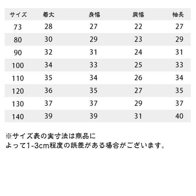 | サイズについての説明 | ※サイズ表の実寸法は商品によって1-3cm程度の誤差がある場合がございます。※通常よりワンサイズ上におすすめ。 |