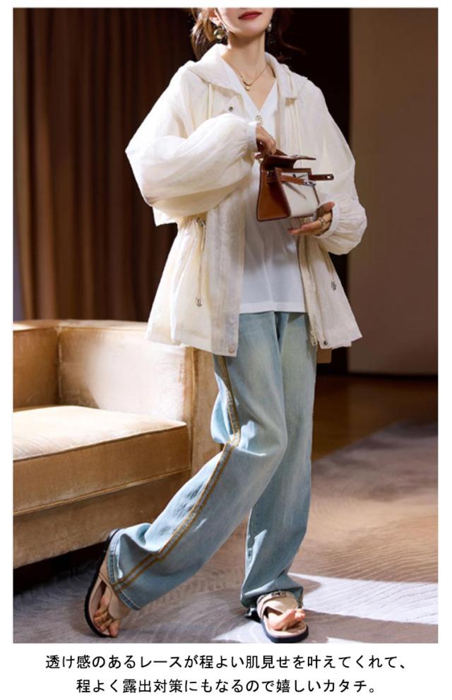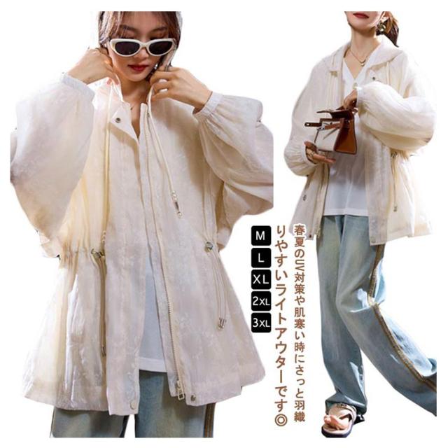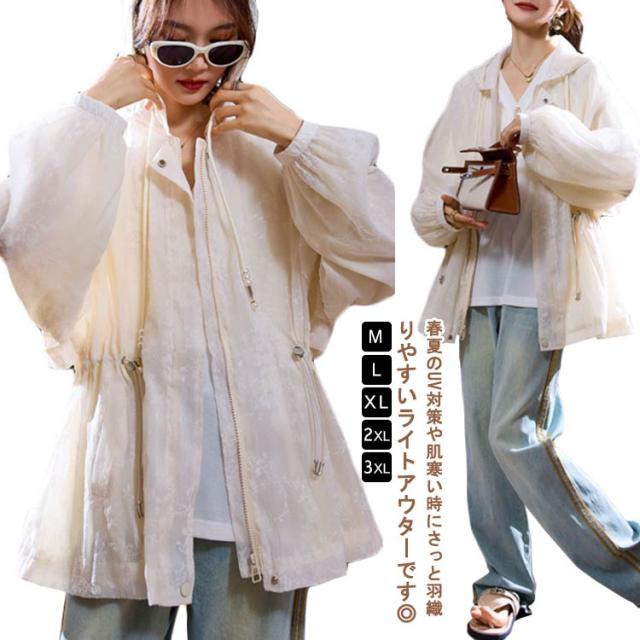 パーカー レース シアー ブルゾン レースパーカー アウター 上着 レディース マウンテンパーカー ショートコート アウター スプリングコート 羽織 ジャケット 羽織り 薄手 長袖 ゆったり 体型カバー スプリングコート カジュアル おしゃれ 通勤 お出かけ 花見