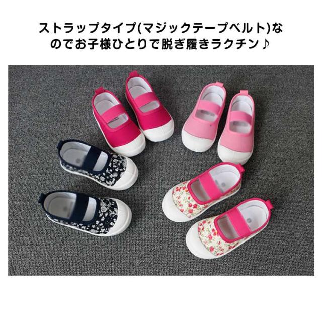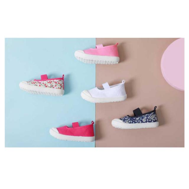 | 【12.5-18.8cm】 保育園や幼稚園、習い事の上履きとして人気のスニーカーです。 ストラップタイプ(マジックテープベルト)なのでお子様ひとりで脱ぎ履きラクチン♪ 底面には滑り止め付きなので教室や廊下も安心です。 カラーソックスや柄ソックスを合わせることで、よりかわいい足元が完成。 | |