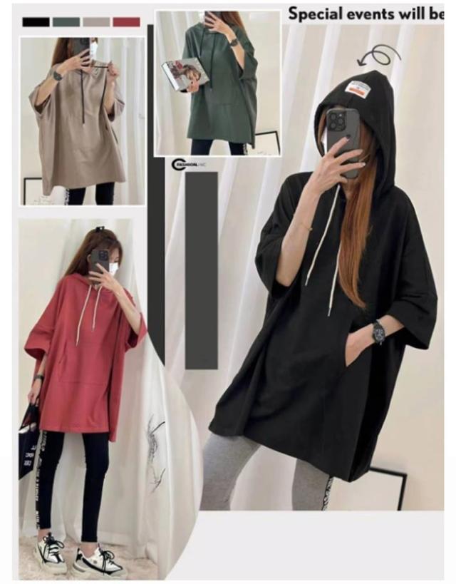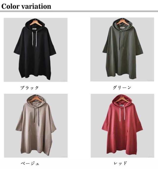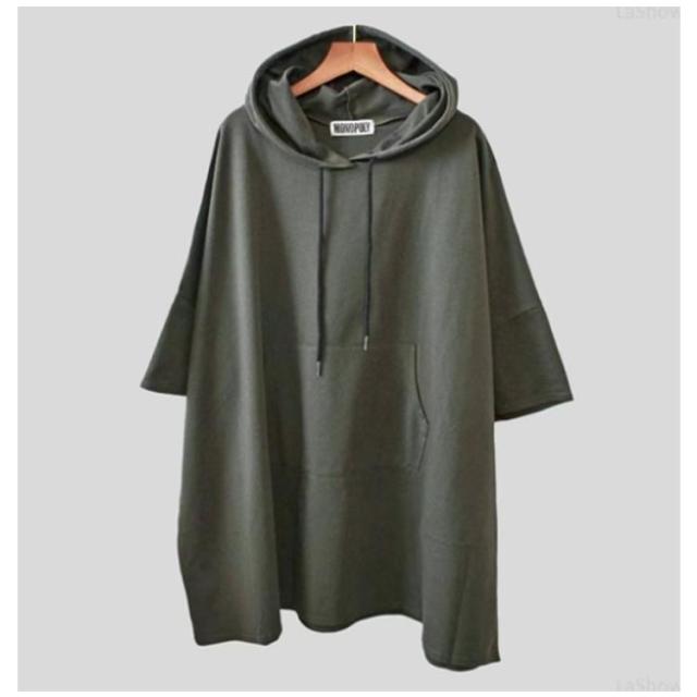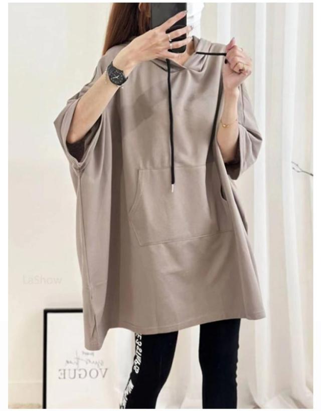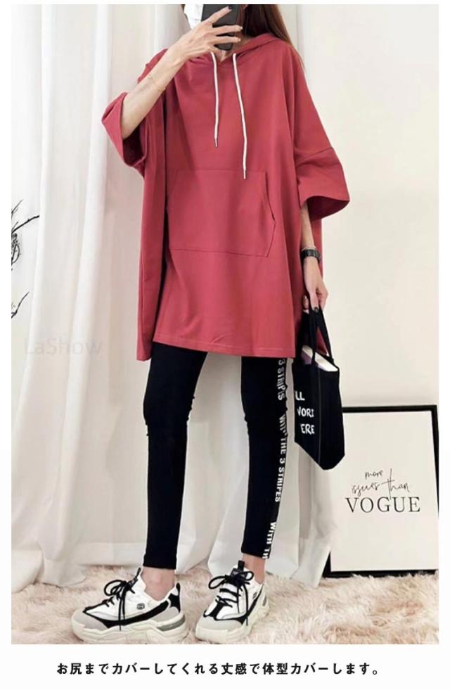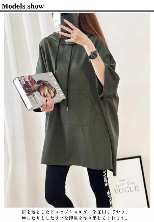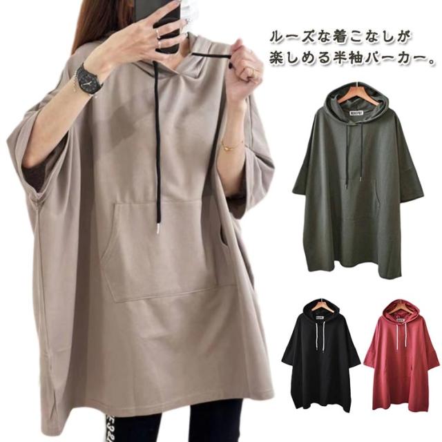ロング丈 フード レディース Tシャツ ゆったり 半袖 Tシャツ パーカー カットソー ロンT プルオーバー チュニック トレーナー 5分袖 無地 オーバーサイズ 大きいサイズ 体型カバー トップス ルームウエア 春 夏