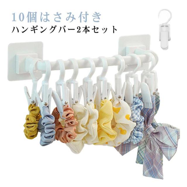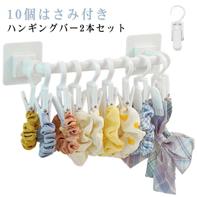 ハンギングバー 天吊り 2本セット ハンギングバー 収納 壁付け ハンガーパイプ ハンガーラック 壁掛け パイプハンガー 10個はさみ付き ウォールハンガー おしゃれ タオルハンガー タオルバー タオル掛け