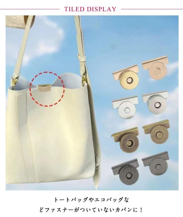 留め具 かばん 中身 トートバッグ 4組 マグネットホック バッグ カバン 落ちにくい シンプル 落下 ペンチ 挟むだけ エコバッグ かばん かんたん取付マグネット ニッケル アンティーク かんたん