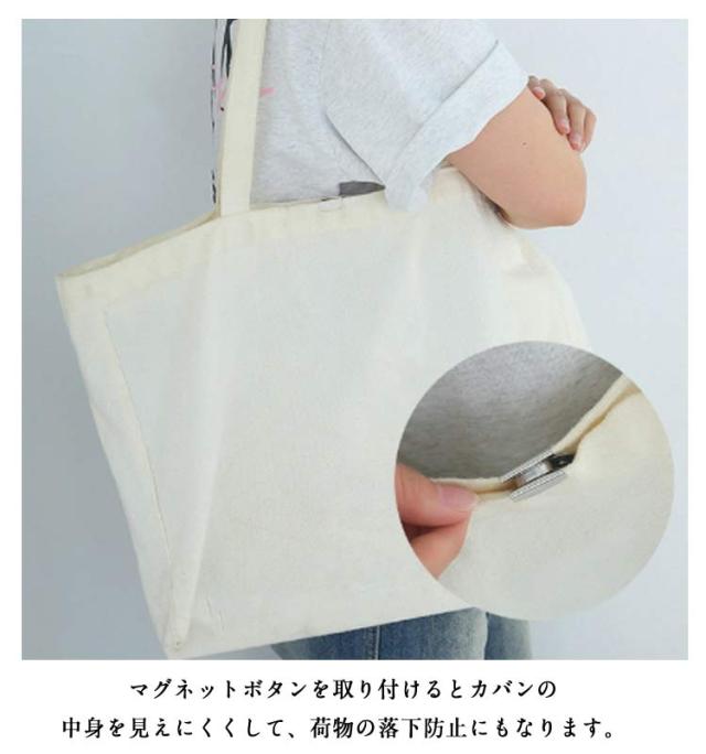 | バッグに後付けできる、便利なマグネットです。 トートバッグやエコバッグなどファスナーがついていないカバンに! バッグのフチにペンチ等で挟んで取り付けるだけ。針も糸も不要なので、不器用さんもラクラク。 マグネットボタンを取り付けるとカバンの中身を見えにくくして、荷物の落下防止にもなります。 4色セットでシンプルなデザインなので、お手持ちのカバンに合わせやすいです。 | |