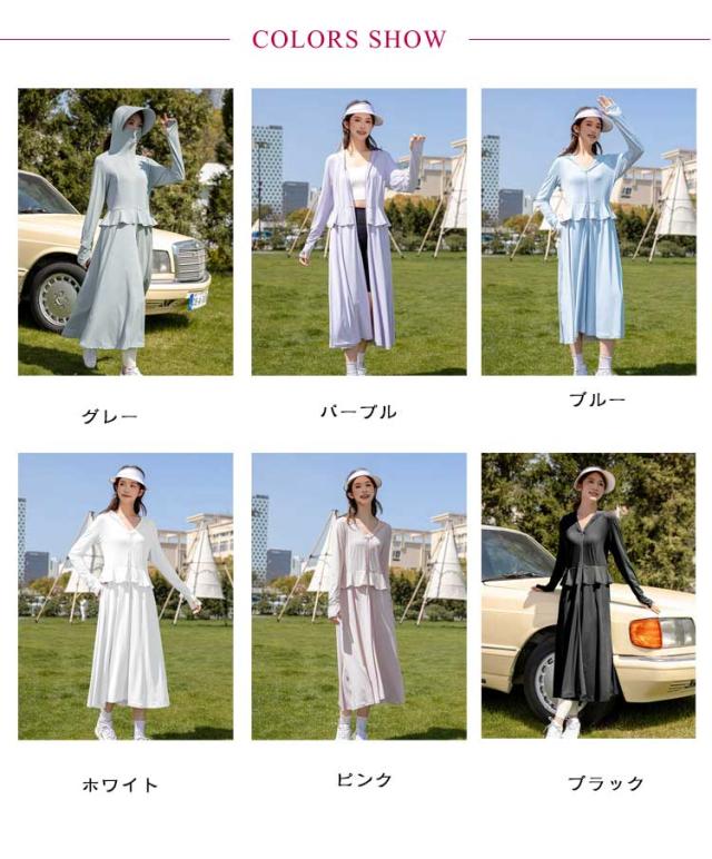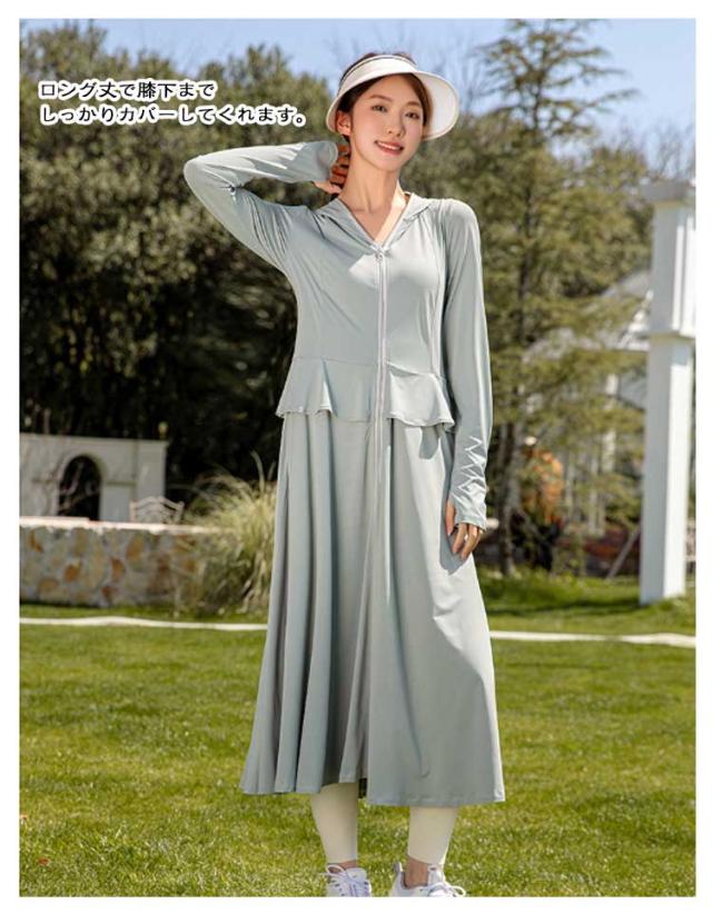 UVカット ハイネック かわいい 全身 パーカー 取り外し UVカット UVパーカー 薄手 長袖 レディース 冷感 指穴 つば おしゃれ フリル Aライン フレア ワンピース ダブルジップ カバー 夏 日焼け止め 日焼け防止