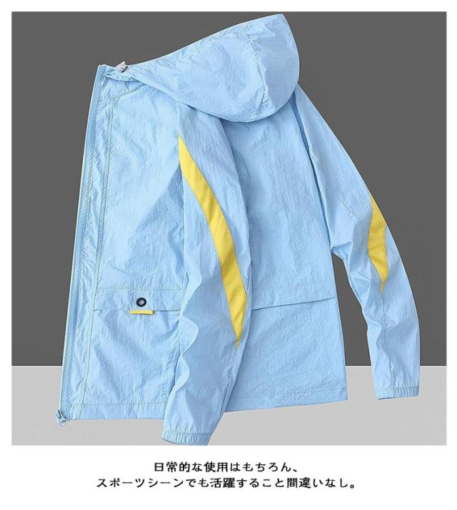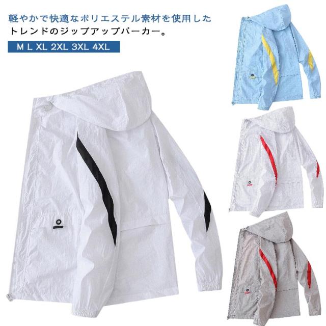 UVケア パーカー マウンテンパーカー ジップアップパーカー 涼しい UVパーカー 薄手 ライトアウター 夏 紫外線カット 羽織り uvカット 軽量 吸水 速乾 uv対策 紫外線対策 接触冷感 パーカー 配色 アウトドア 釣り キャンプ 父の日 トラックパーカー