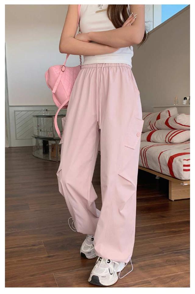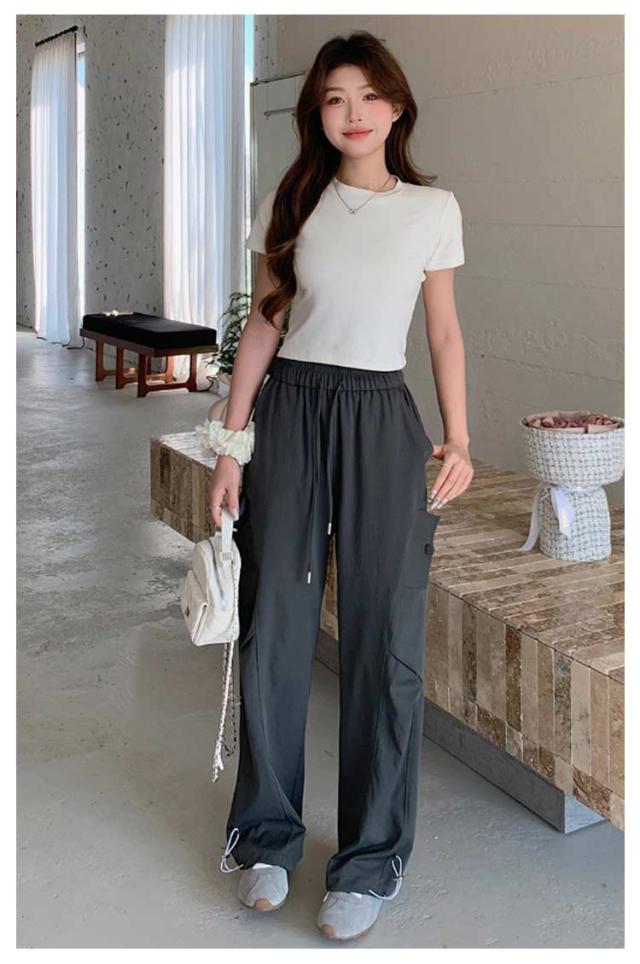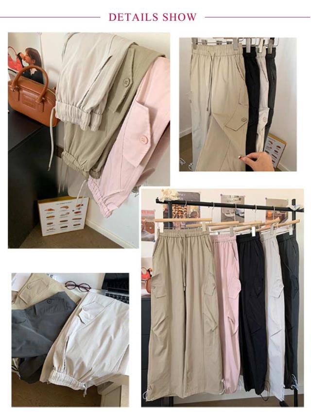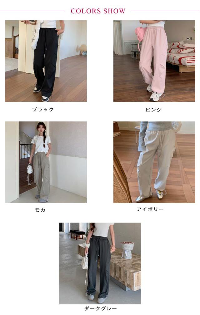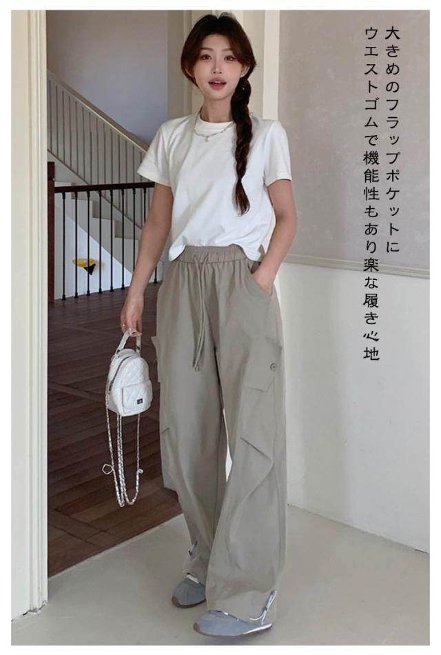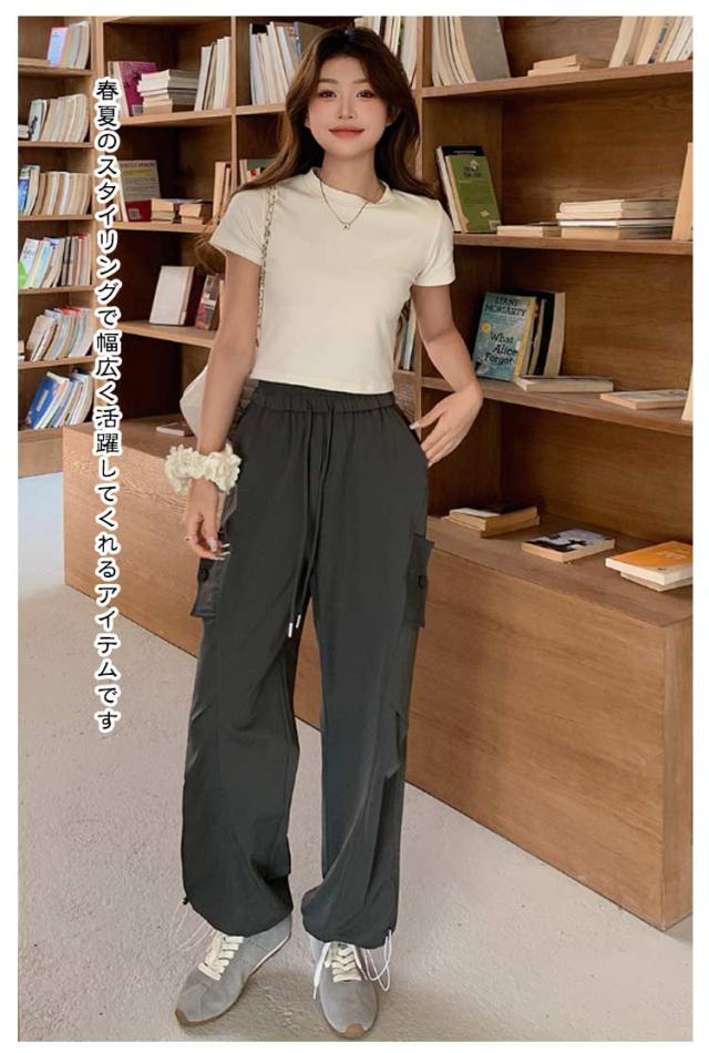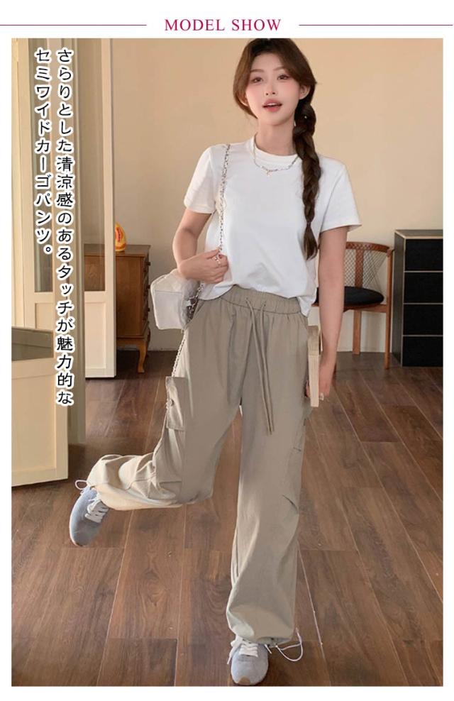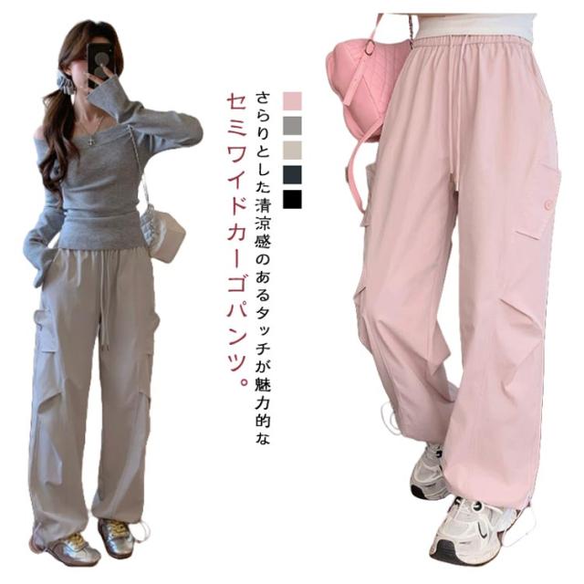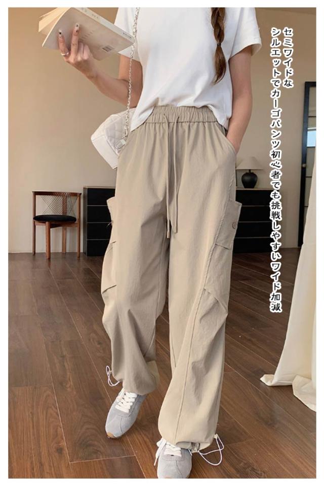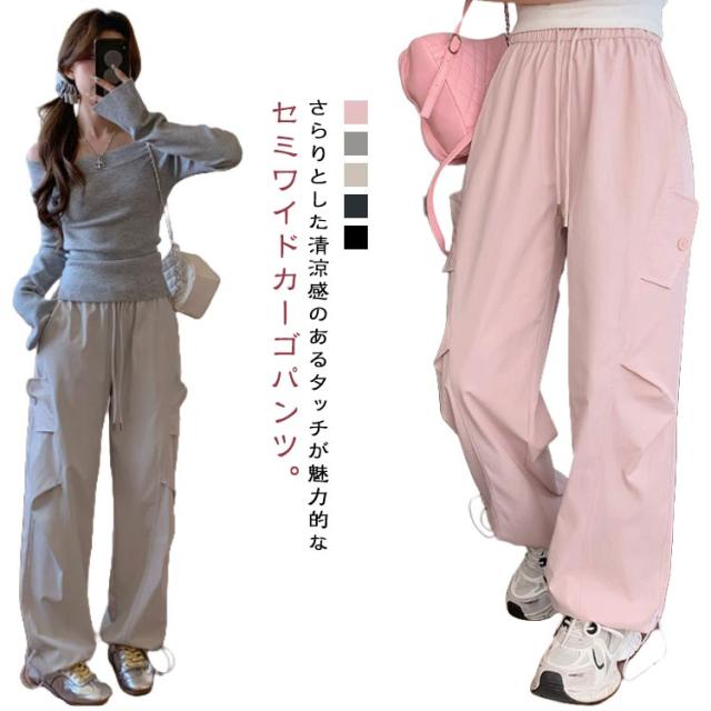 ロングパンツ セミワイドパンツ ワイド レディース 春 カーゴパンツ ダンスパンツ 薄手 セミワイド 夏 体型カバー セミワイドパンツ ゴムウエスト ドローコード付き ゆったり ミリタリー 美脚 ボトムス カーブパンツ おしゃれ カジュアル ダンス 通勤 無地