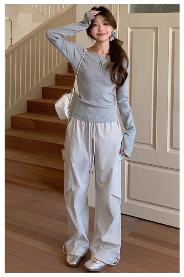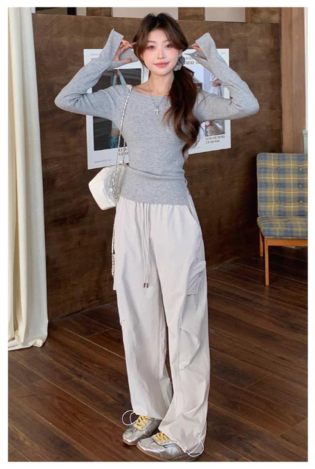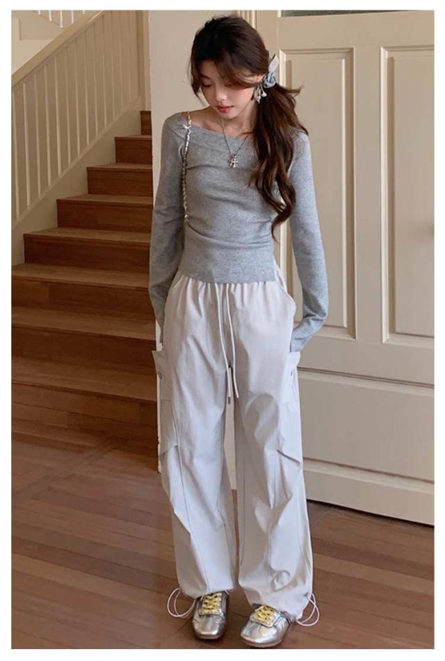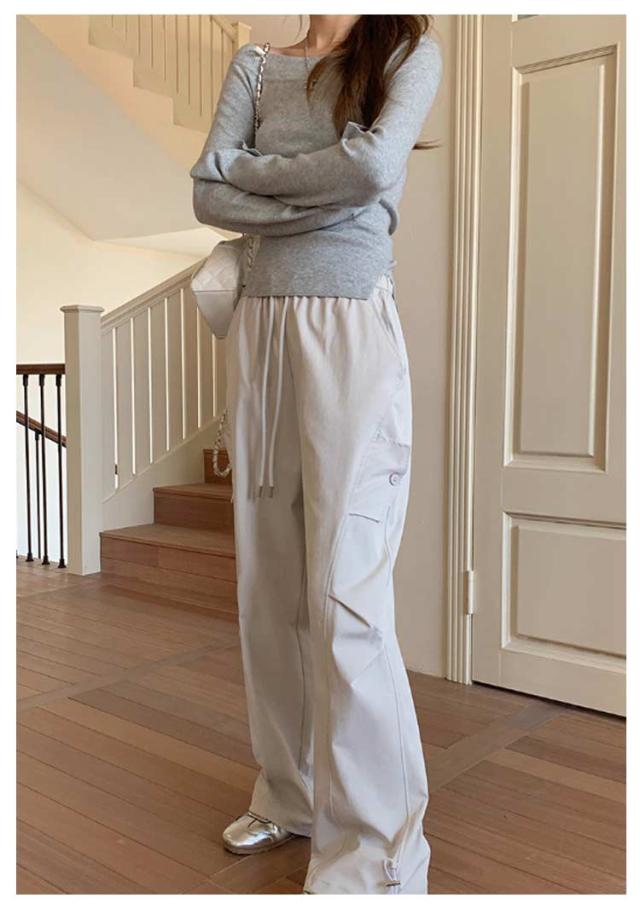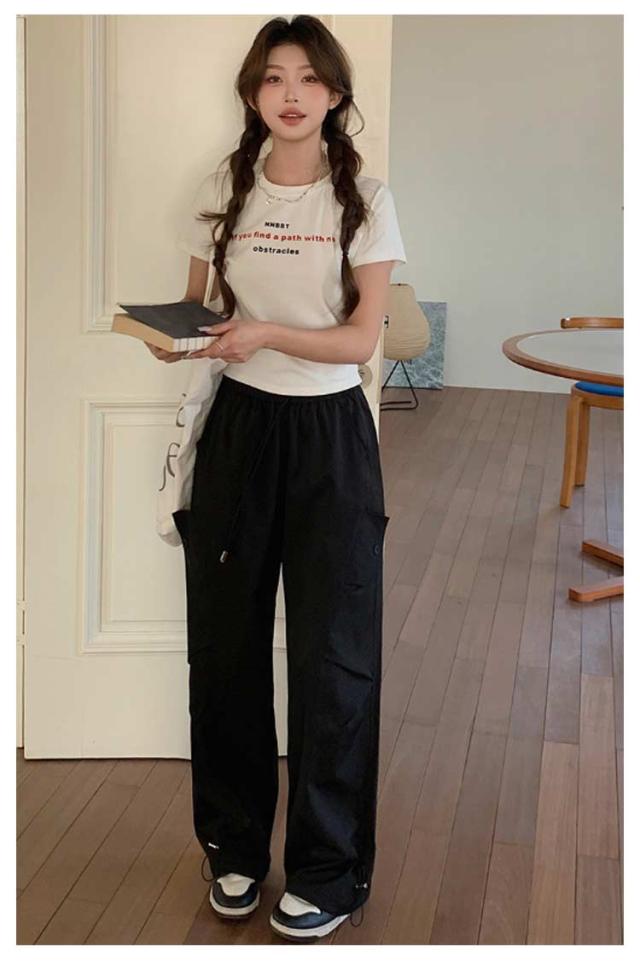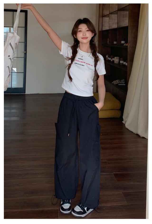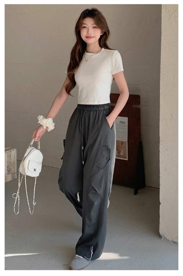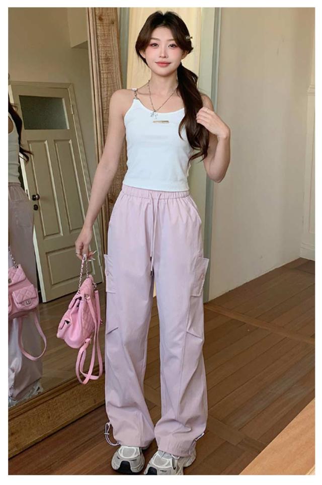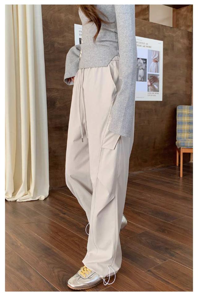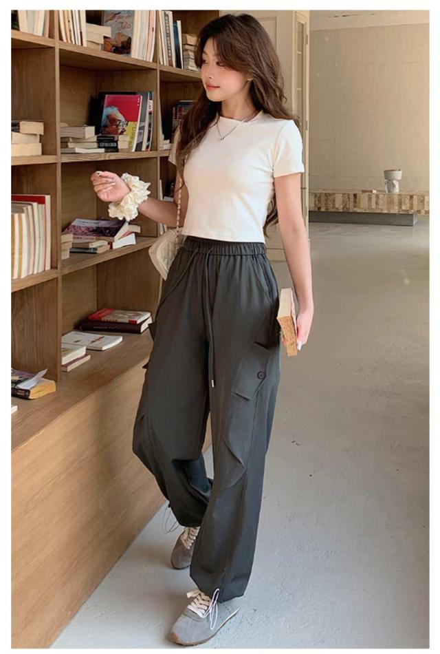 ロングパンツ セミワイドパンツ ワイド レディース 春 カーゴパンツ ダンスパンツ 薄手 セミワイド 夏 体型カバー セミワイドパンツ ゴムウエスト ドローコード付き ゆったり ミリタリー 美脚 ボトムス カーブパンツ おしゃれ カジュアル ダンス 通勤 無地