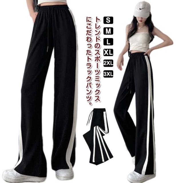 スポーツウェア レディース 夏 ワイドパンツ ロングパンツ 通気 トレーニングパンツ トラックパンツ サイドライン ランニング ジャージ ヨガパンツ 吸湿 速乾 トラックジャージ リラックスパンツ