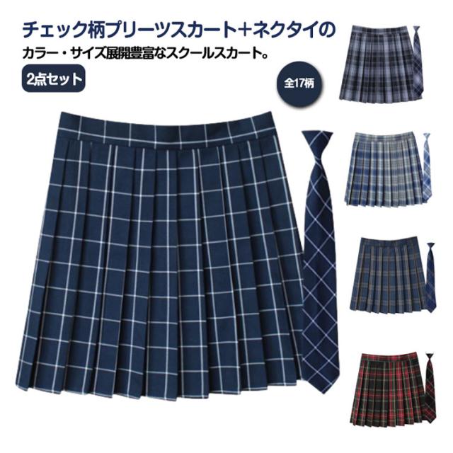 | チェック柄プリーツスカート+ネクタイの2点セット 全17柄 カラー・サイズ展開豊富なスクールスカート。 学生制服にも、なんちゃって制服にもおすすめです。 | |