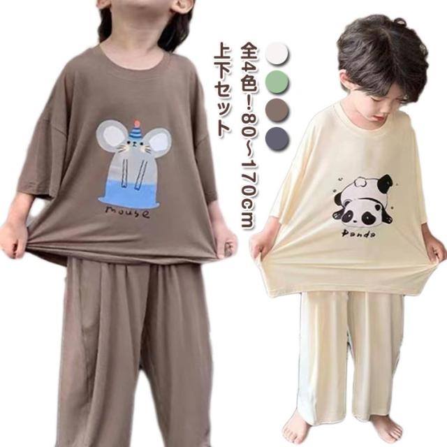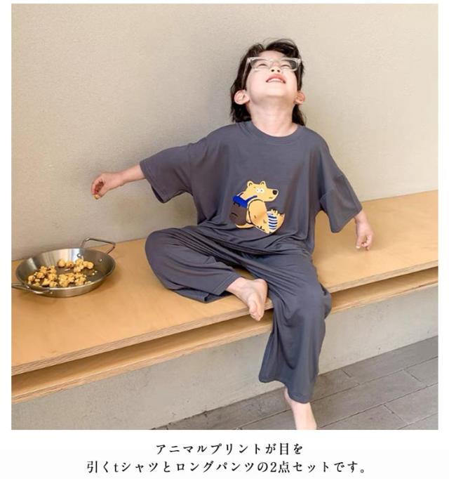 ルームウェア 女の子 上下セット 夏 tシャツ ルームウェア 半袖 男の子 パジャマ ルームウェア セットアップ 薄手 モダール ロングパンツ 2点セット アニマル柄 子供服 ゆったり 部屋着 寝巻き 春夏 子ども 子供パジャマ キッズパジャマ 80〜170cm