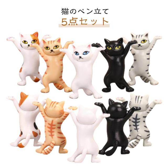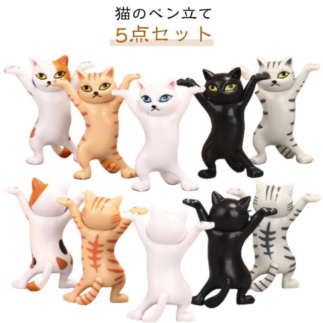 ヘッドフォンホルダー モデル プレゼント 猫グッズ おしゃれ プレゼント 猫のペン立て 小さい 猫 置物 ペンホルダー 【5点セット】ぺんおき 【5点セット】ぺんおき 雑貨 ペンたて ペンホルダー ネコ 踊る猫