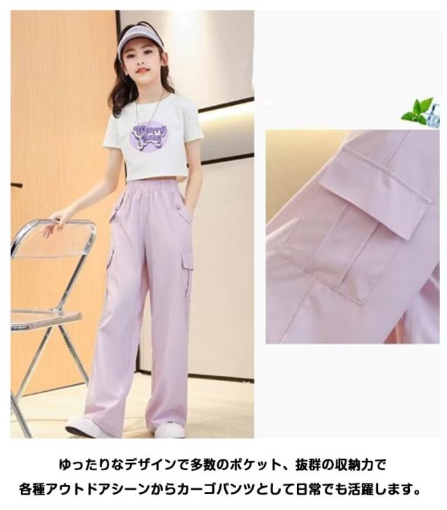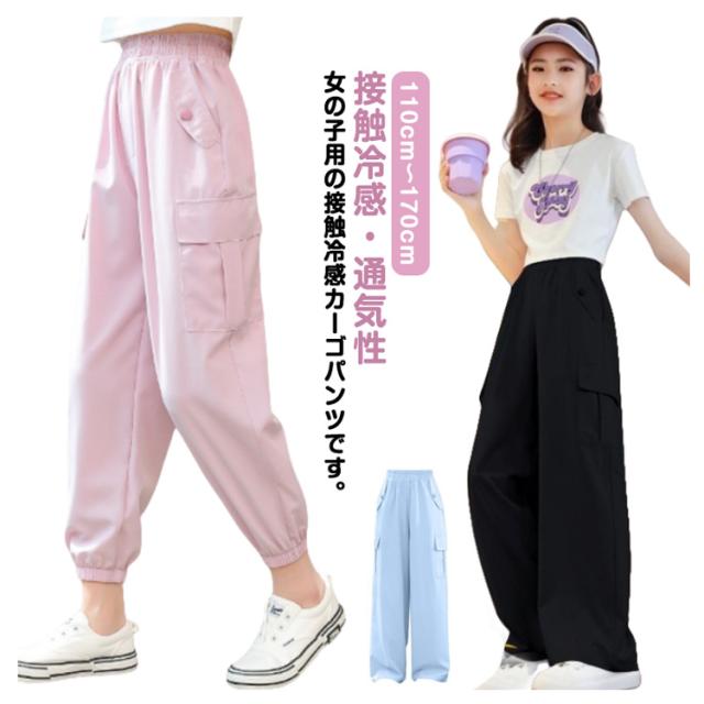 接触冷感 ゆったり ジュニア ジュニア キッズ ワイドパンツ カジュアル ポケット 蚊よけ 長ズボン 春 カーゴパンツ 薄手 ひんやり 涼しい 女の子 ダンスウェア ヒップホップ カーゴパンツ おしゃれ 涼しい 子供服 冷感パンツ ロングパンツ 夏 秋 ガールズ 韓国 110-170cm