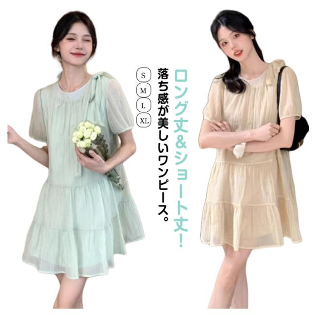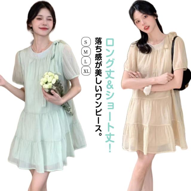 ロングワンピース ひんやり ショートワンピース レディース ティアード ワンピース 接触冷感 フレアー 薄手 無地 スキッパー 春 リゾートワンピース 涼しい 50代 ロング丈 半袖 Uネック ワンピ カジュアル 大人 ロングワンピース 30代 40代 20代 ゆったり 体型カバー