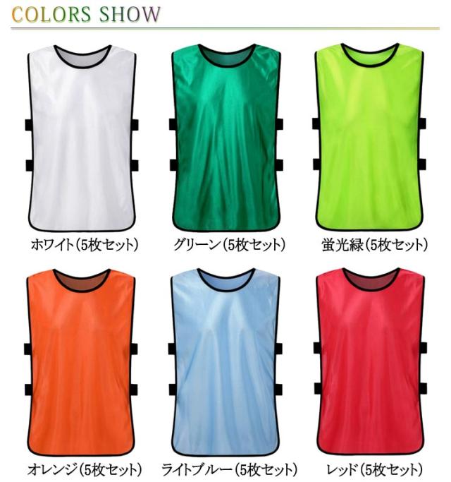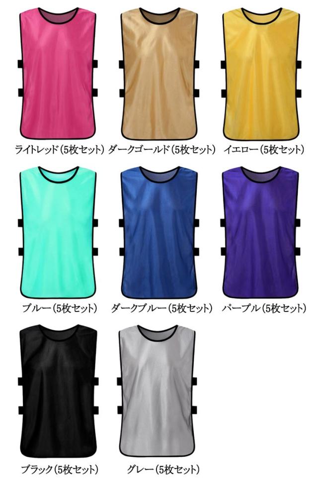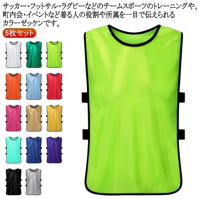 | サッカー・フットサル・ラグビーなどのチームスポーツのトレーニングや、町内会・イベントなど着る人の役割や所属を一目で伝えられるカラーゼッケンです。5枚セット スポーツの練習時の組み分けのために着用するのはもちろん、災害・防災・防犯・イベントなどで所属団体を示したり。 役割を明らかにするために広く使用されています。 ビブスのサイドはゴムバンド式です。ゴムの伸縮性で幅広い体格の人が着られ、またサイドが伸びるため大きな体格の人でも着脱しやすいというメリットがあります。 | |